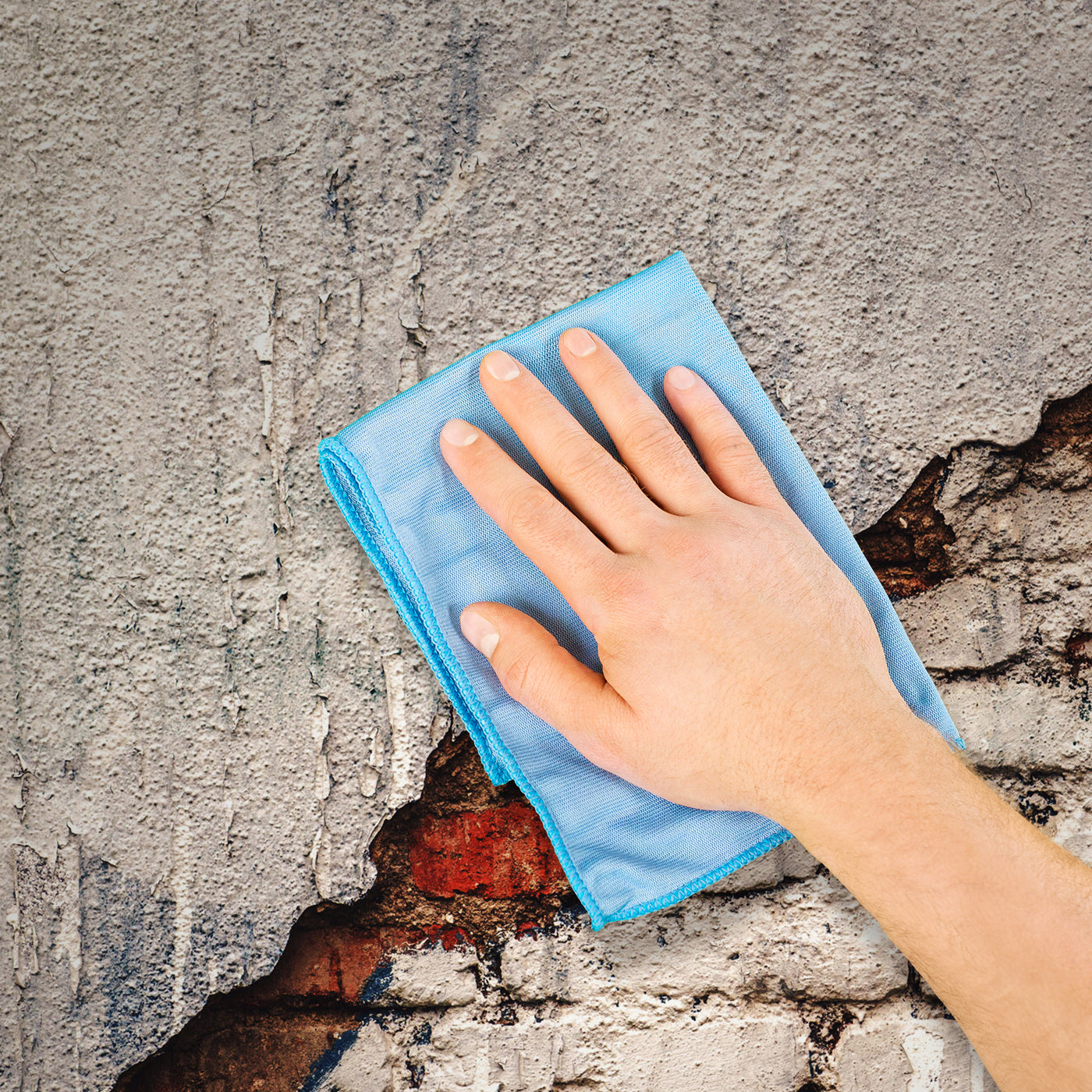- Reinige eventuelle Verschmutzungen oder Kleberreste sofort mit einem feuchten Schwamm oder Tuch.