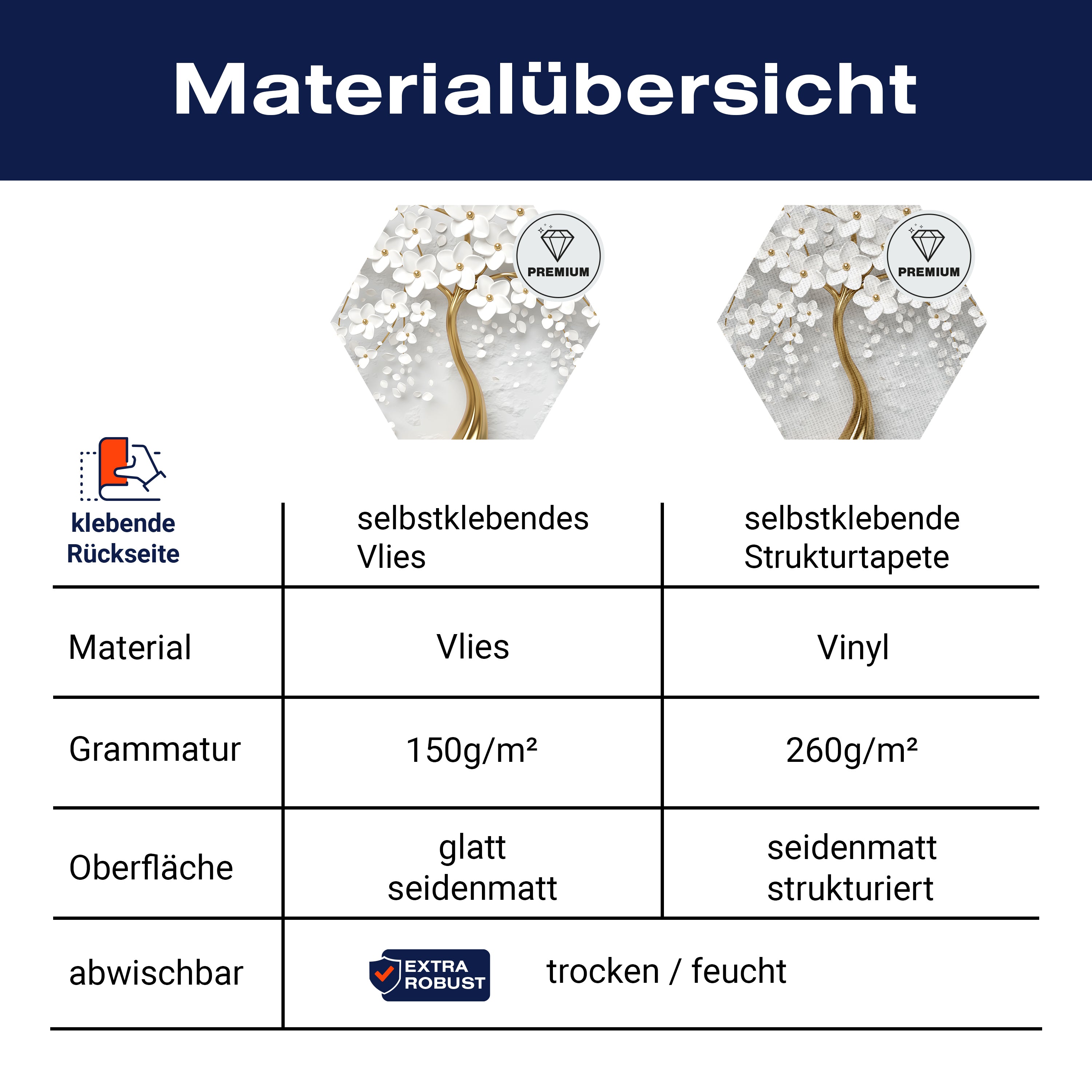 - Selbstklebendes Vlies 150g/m²: Einfach anzubringen, perfekt für Mietwohnungen.