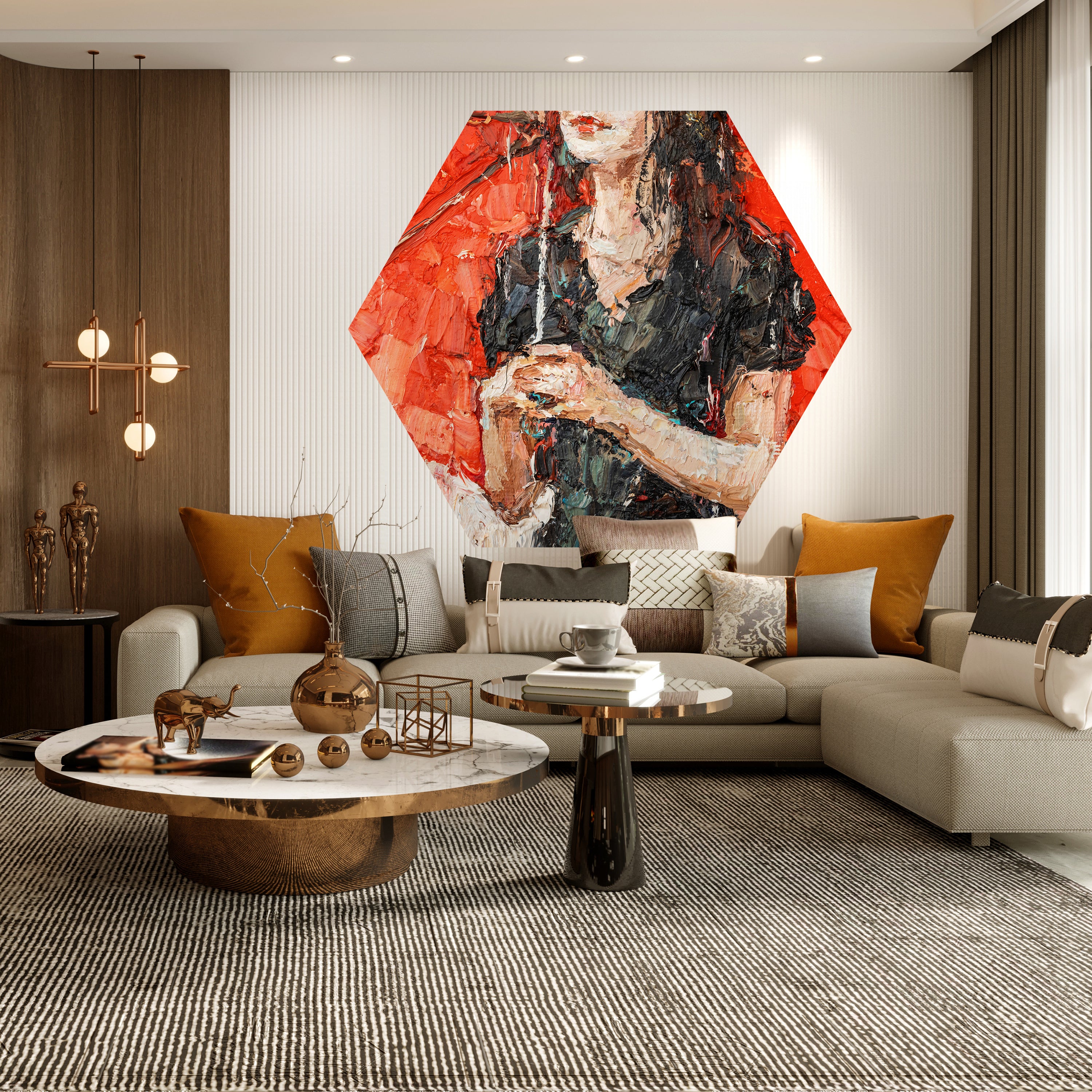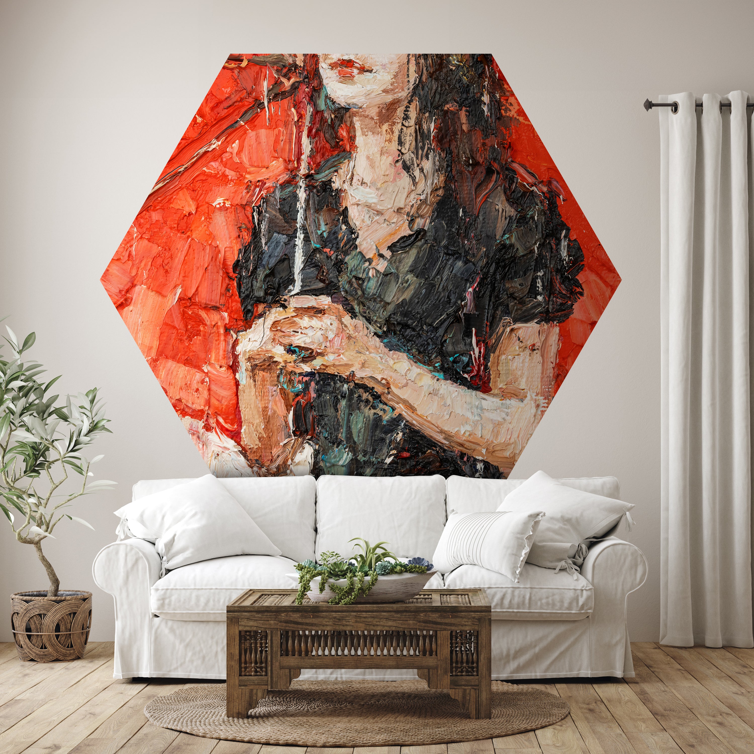 HEXAGON-FOTOTAPETE Frau Malerei Regenschirm