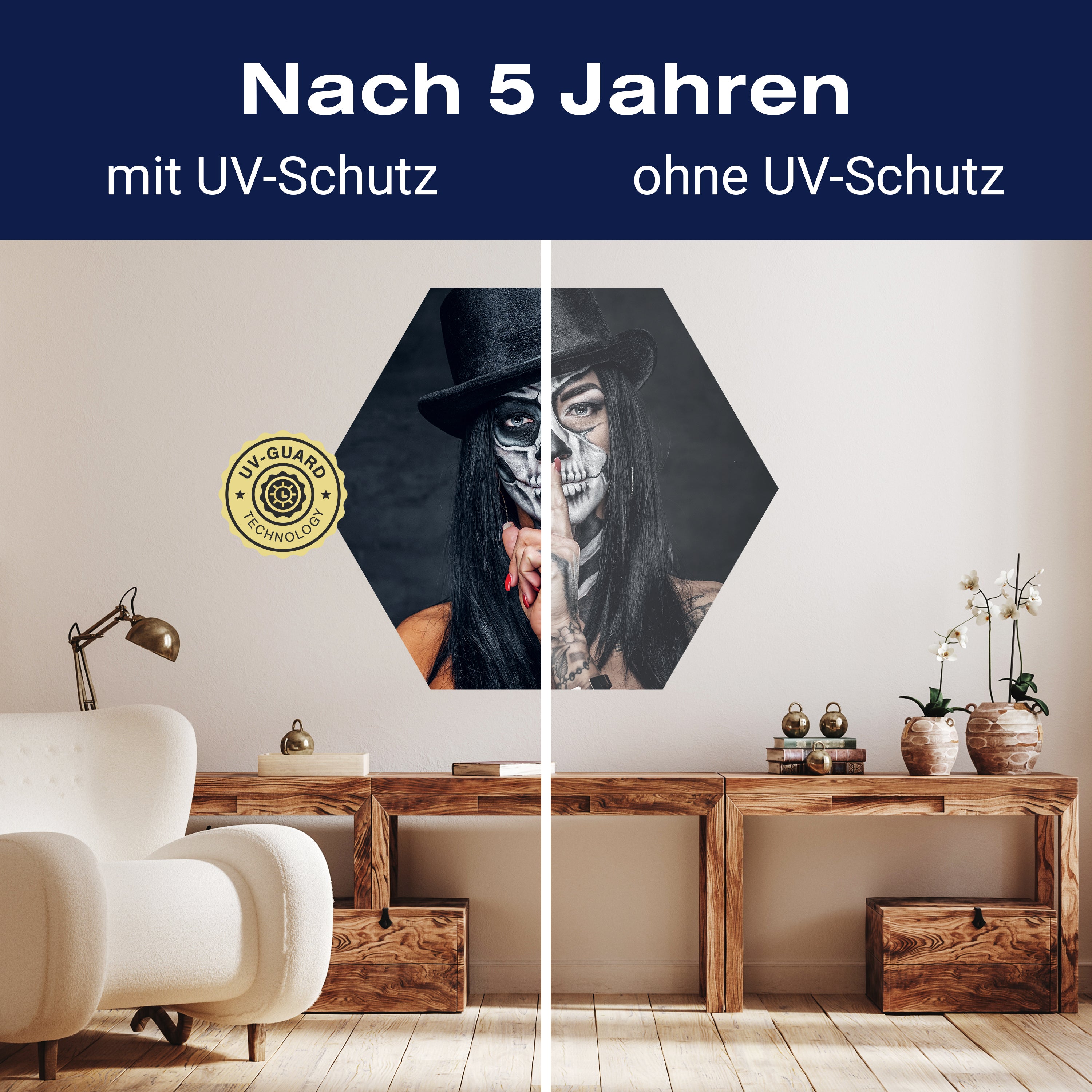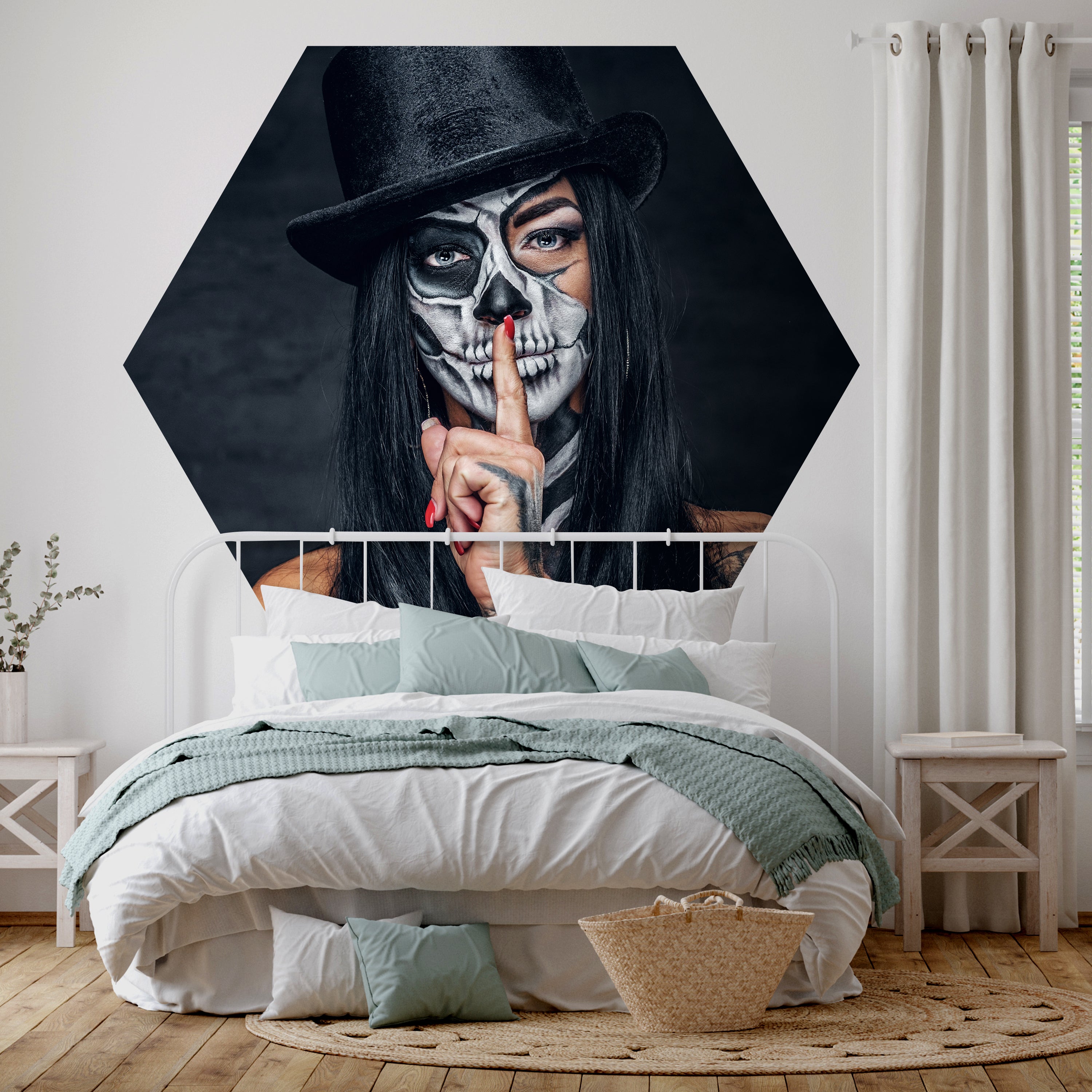 HEXAGON-FOTOTAPETE Frau mit Totenkopf