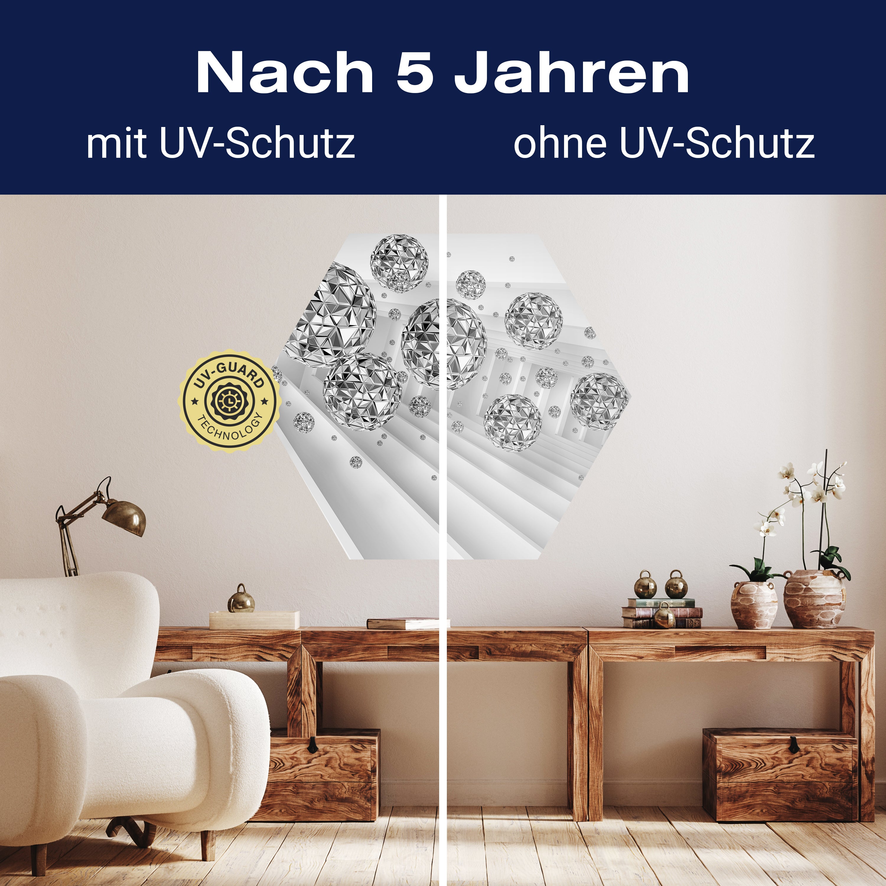 Setze auf die UV-Guard-Technologie, um deine selbstklebenden Panorama-Fototapeten nicht nur atemberaubend, sondern auch dauerhaft strahlend zu gestalten. Dieser fortschrittliche UV-Schutz sorgt dafür, dass die lebhaften Farben und scharfen Details deiner Wandgestaltung gegen die bleichende Wirkung der Sonnenstrahlen geschützt sind. Egal, wie intensiv das Sonnenlicht ist, die UV-Guard-Technologie bewahrt die Brillanz und Tiefe deiner Bilder, sodass sie jahrelang wie neu aussehen. Mach dir keine Sorgen mehr über verblassende Farben oder den Verlust von Detailreichtum. Mit dieser Technologie investierst du in die Langlebigkeit und Schönheit deiner Räume. Steige jetzt um auf UV-Guard und genieße ungetrübte Farbenpracht bei jedem Licht.