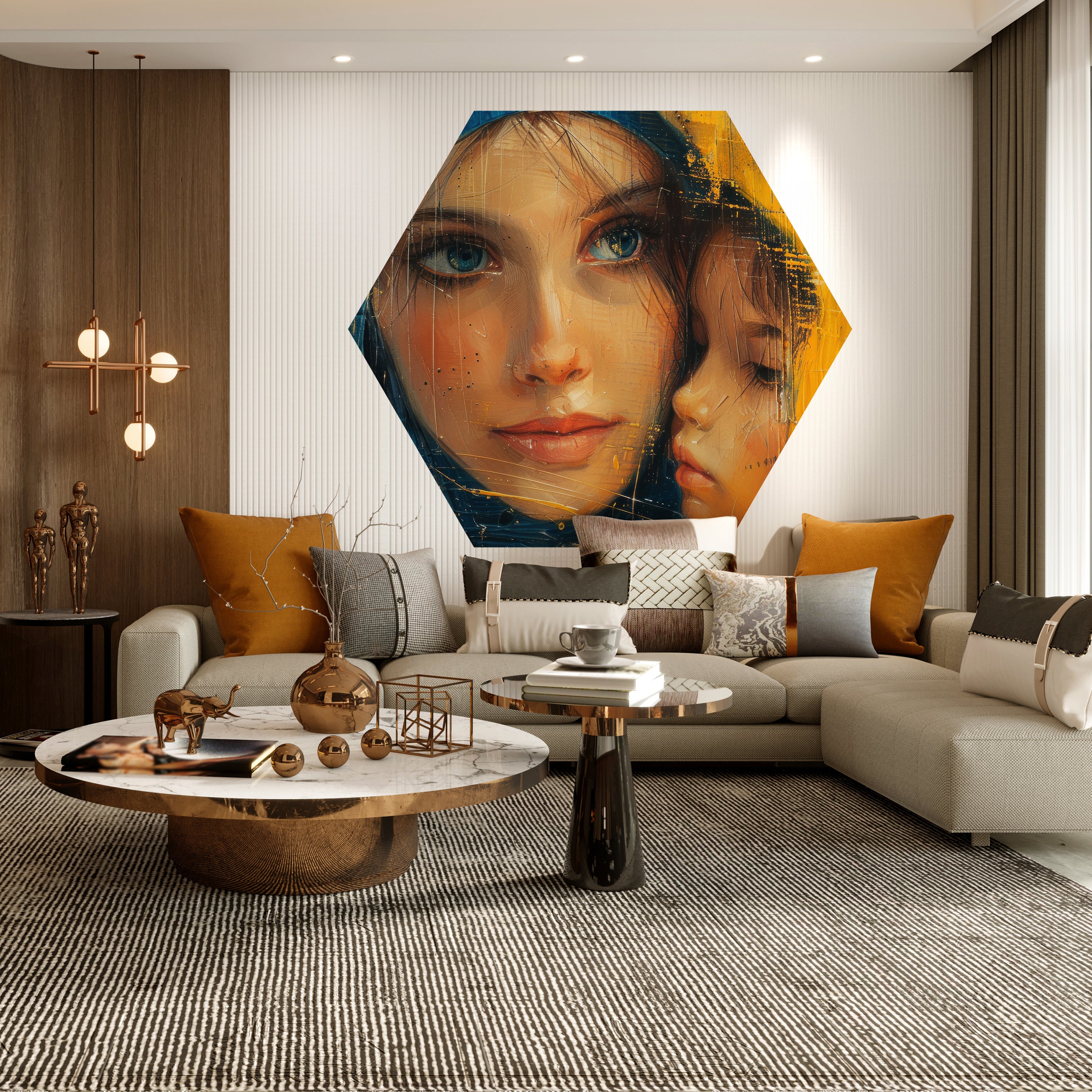 Hexagon-Fototapete Malerei Frau Kind M0054