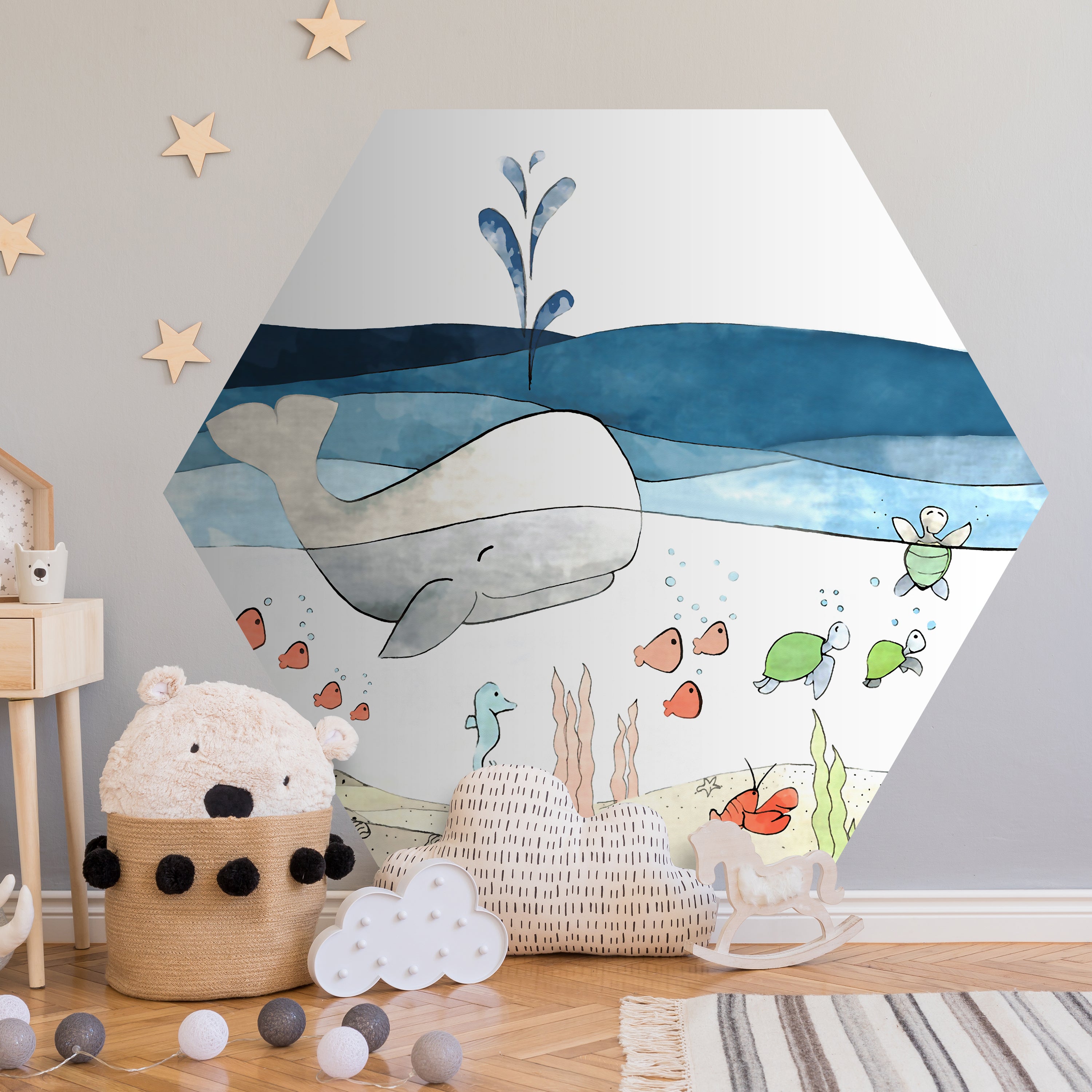 HEXAGON-FOTOTAPETE Wal Schildkröte Meer