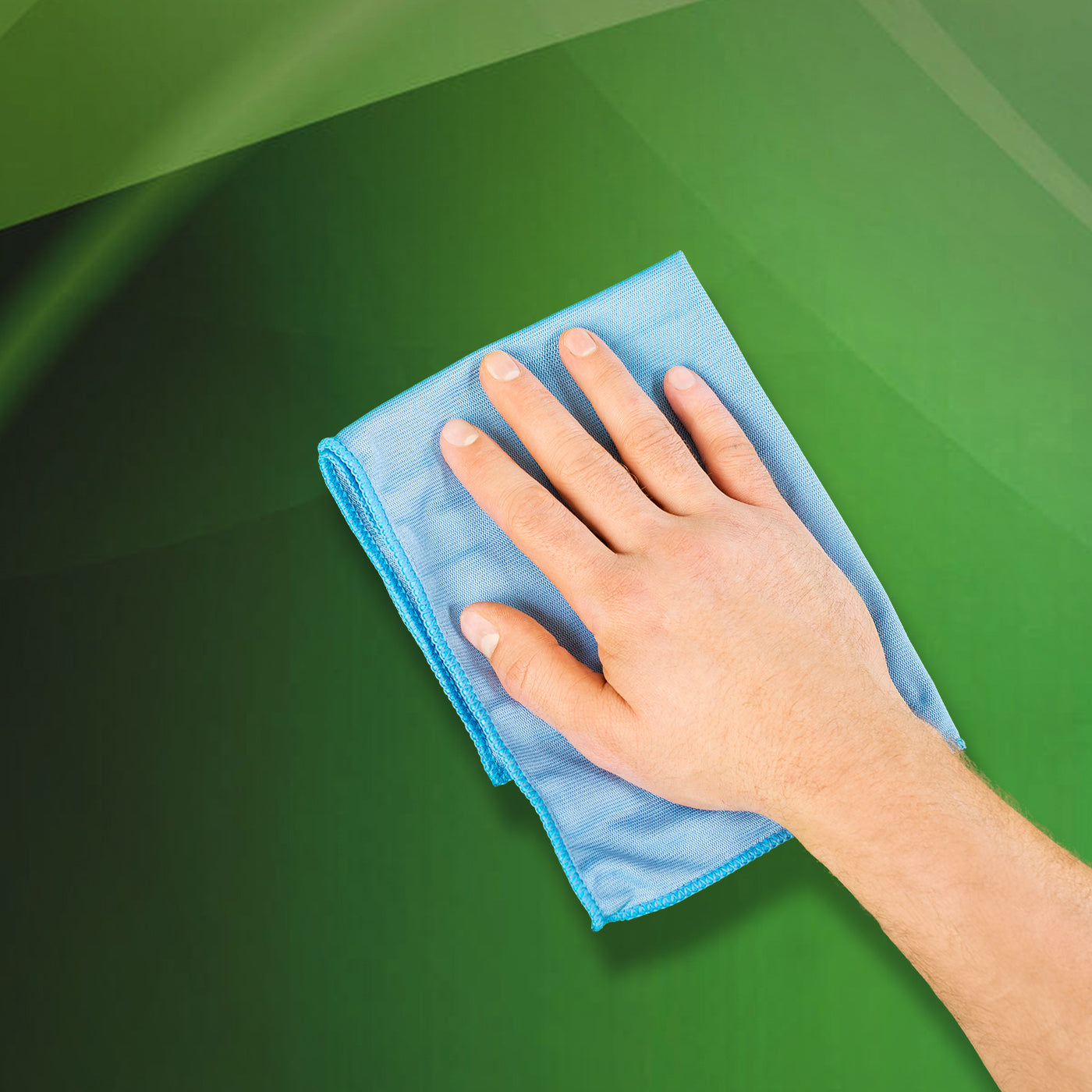 - Trockne die Oberfläche mit einem sauberen, fusselfreien Tuch ab, um Streifen oder Wasserflecken zu vermeiden.