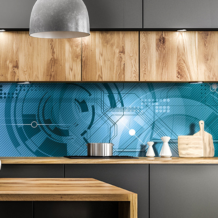 Bist Du es leid, auf die langweiligen, schwer zu reinigende Fliesen in Deiner Küche zu schauen? Stell Dir vor, wie Deine Küche mit einer stilvollen, modernen Rückwand zum Leben erwacht! Unsere Küchenrückwand 'Abstrakt Technik 1' ist nicht nur ein optisches Highlight, sondern auch praktisch und pflegeleicht.