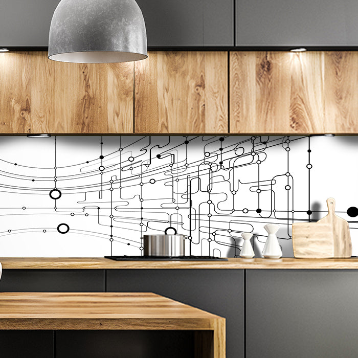 Bist Du es leid, auf die langweiligen, schwer zu reinigende Fliesen in Deiner Küche zu schauen? Stell Dir vor, wie Deine Küche mit einer stilvollen, modernen Rückwand zum Leben erwacht! Unsere Küchenrückwand 'Abstrakte Verbindungen' ist nicht nur ein optisches Highlight, sondern auch praktisch und pflegeleicht.