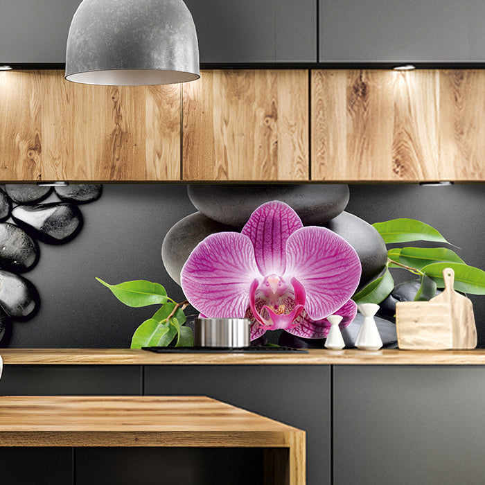 Küchenrückwand Bambus Steine Schwarz Orchidee Magenta M1185
