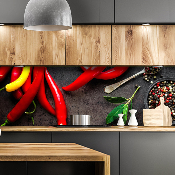 Bist Du es leid, auf die langweiligen, schwer zu reinigende Fliesen in Deiner Küche zu schauen? Stell Dir vor, wie Deine Küche mit einer stilvollen, modernen Rückwand zum Leben erwacht! Unsere Küchenrückwand 'Chili-Pfeffer' ist nicht nur ein optisches Highlight, sondern auch praktisch und pflegeleicht.
