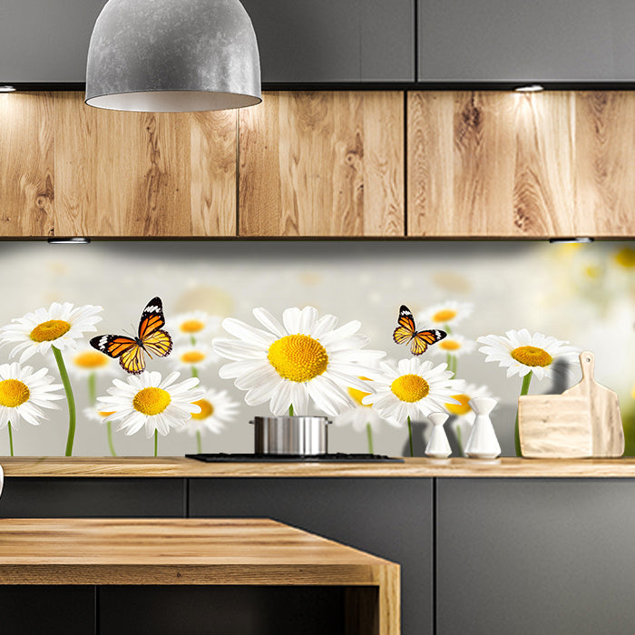 Küchenrückwand Gänseblümchen Schmetterlinge M1095