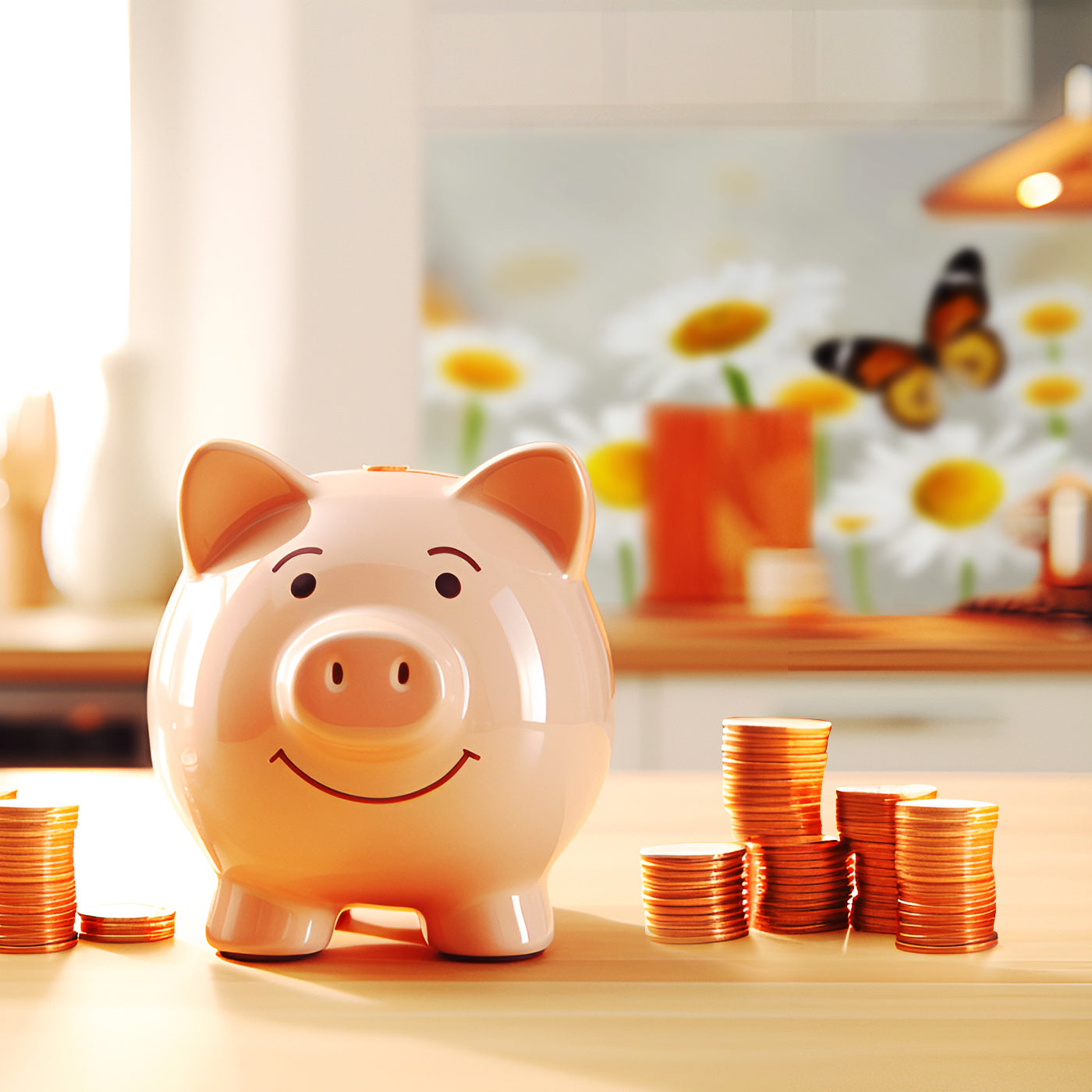 Bist Du es leid, auf die langweiligen, schwer zu reinigende Fliesen in Deiner Küche zu schauen? Stell Dir vor, wie Deine Küche mit einer stilvollen, modernen Rückwand zum Leben erwacht! Unsere Küchenrückwand 'Gänseblümchen Schmetterlinge' ist nicht nur ein optisches Highlight, sondern auch praktisch und pflegeleicht.