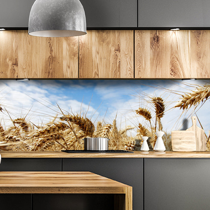 Bist Du es leid, auf die langweiligen, schwer zu reinigende Fliesen in Deiner Küche zu schauen? Stell Dir vor, wie Deine Küche mit einer stilvollen, modernen Rückwand zum Leben erwacht! Unsere Küchenrückwand 'Kornfeld' ist nicht nur ein optisches Highlight, sondern auch praktisch und pflegeleicht.