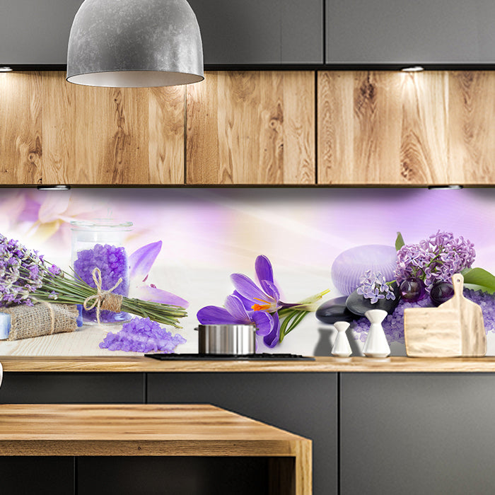 Küchenrückwand Lila Steine Glas Flieder Krokusse Flow M1177