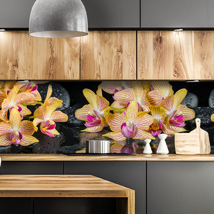 Bist Du es leid, auf die langweiligen, schwer zu reinigende Fliesen in Deiner Küche zu schauen? Stell Dir vor, wie Deine Küche mit einer stilvollen, modernen Rückwand zum Leben erwacht! Unsere Küchenrückwand 'Orchidee Steine Wasser' ist nicht nur ein optisches Highlight, sondern auch praktisch und pflegeleicht.