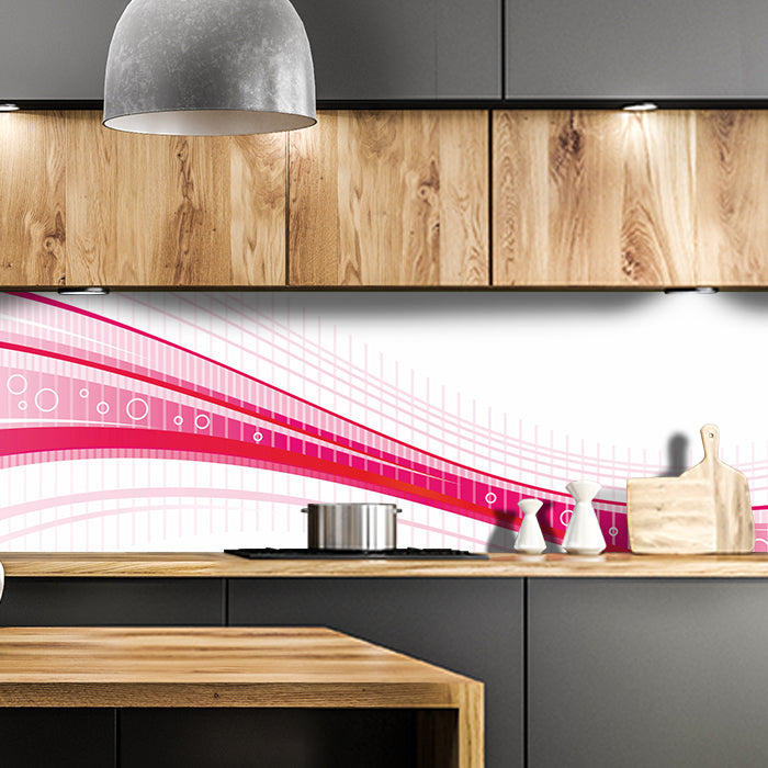 Bist Du es leid, auf die langweiligen, schwer zu reinigende Fliesen in Deiner Küche zu schauen? Stell Dir vor, wie Deine Küche mit einer stilvollen, modernen Rückwand zum Leben erwacht! Unsere Küchenrückwand 'Pinke Welle' ist nicht nur ein optisches Highlight, sondern auch praktisch und pflegeleicht.