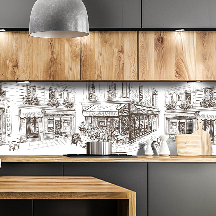 Küchenrückwand Stadtleben malen Kaffee Cafe Skizze M1238