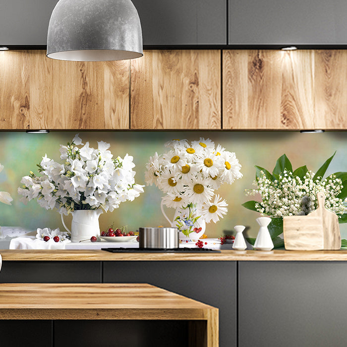 Küchenrückwand Tulpen Gänseblümchen Weiß Kirschen M1088