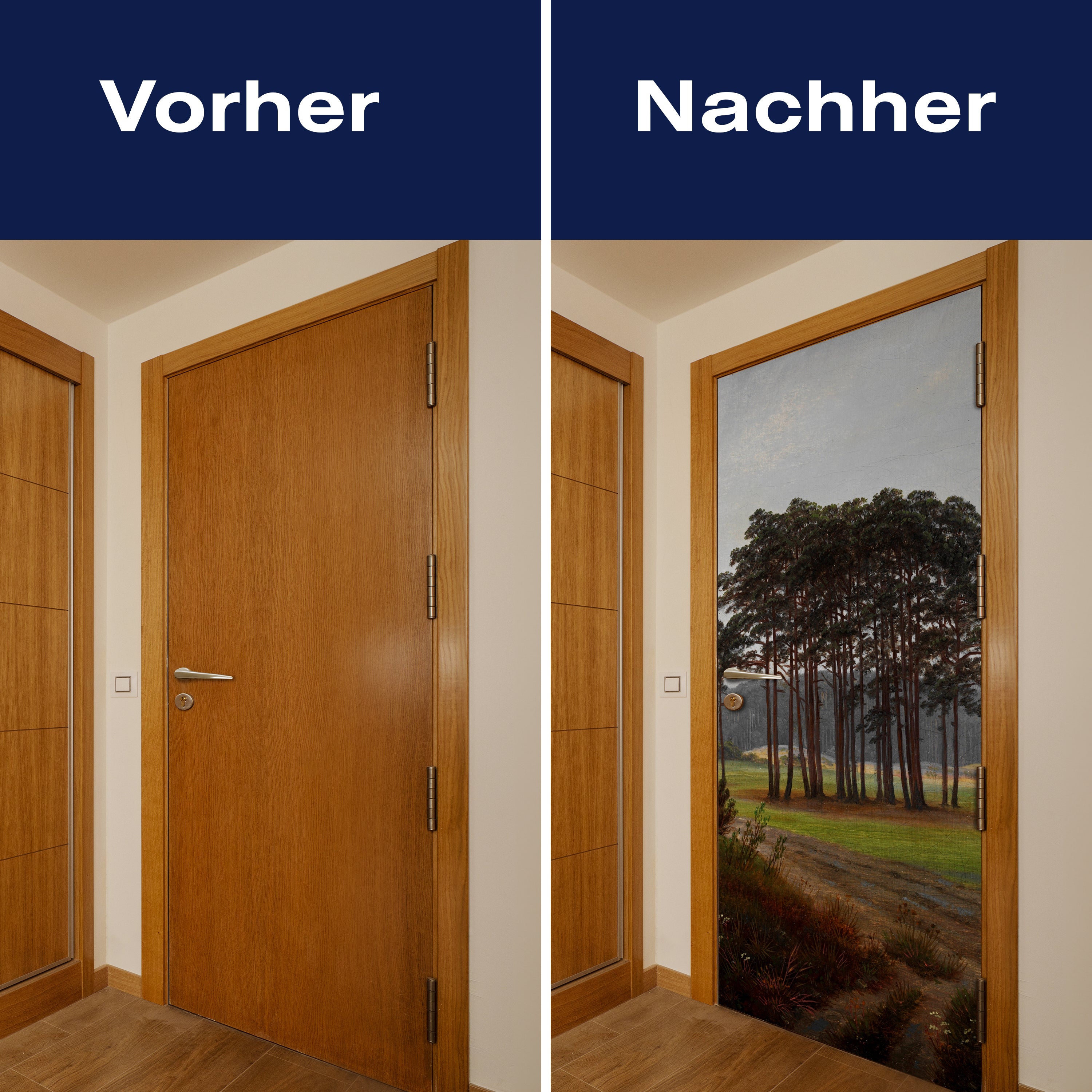 Hast du jemals darüber nachgedacht, wie eine einfache Veränderung deinen Wohnraum komplett umgestalten kann? Die Türtapete Morgen Waldwiese Caspar David Friedrich von Wandmotiv24 ist genau das, was du brauchst, um deinem Zuhause einen Hauch von Einzigartigkeit und Stil zu verleihen. Dieses einzigartige Design erzielt eine atemberaubende visuelle Wirkung, die jeden Betrachter in den Bann zieht.