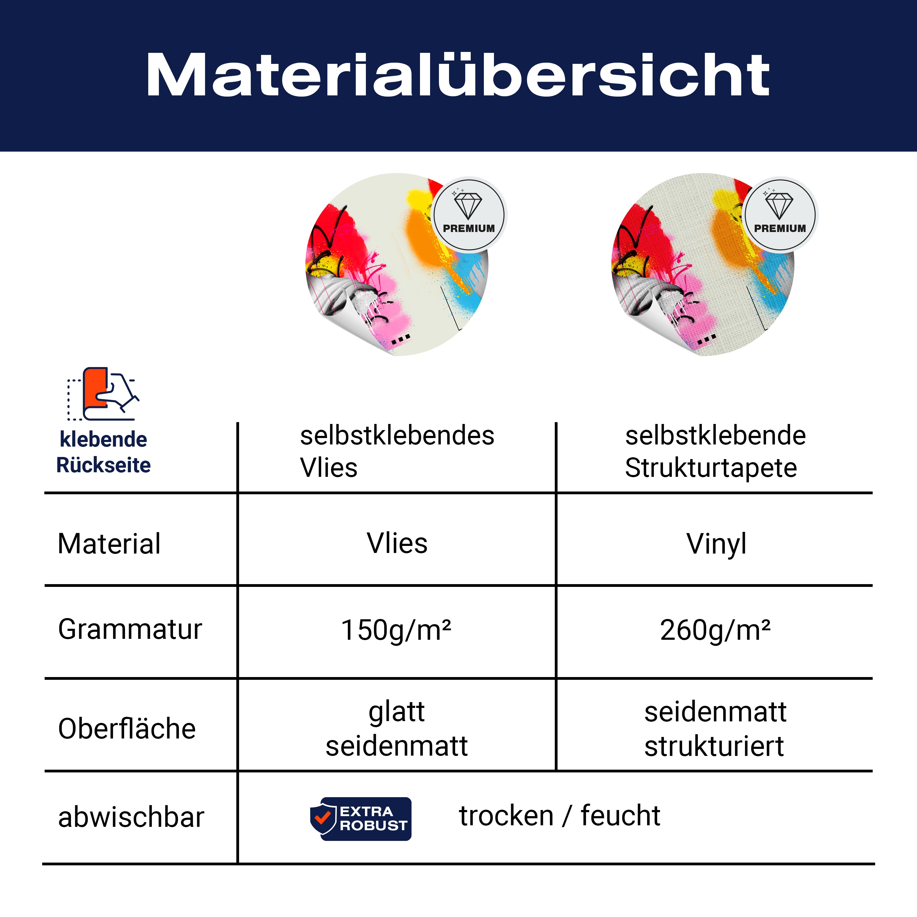 - Selbstklebendes Vlies 150g/m²: Einfach anzubringen, perfekt für Mietwohnungen.
