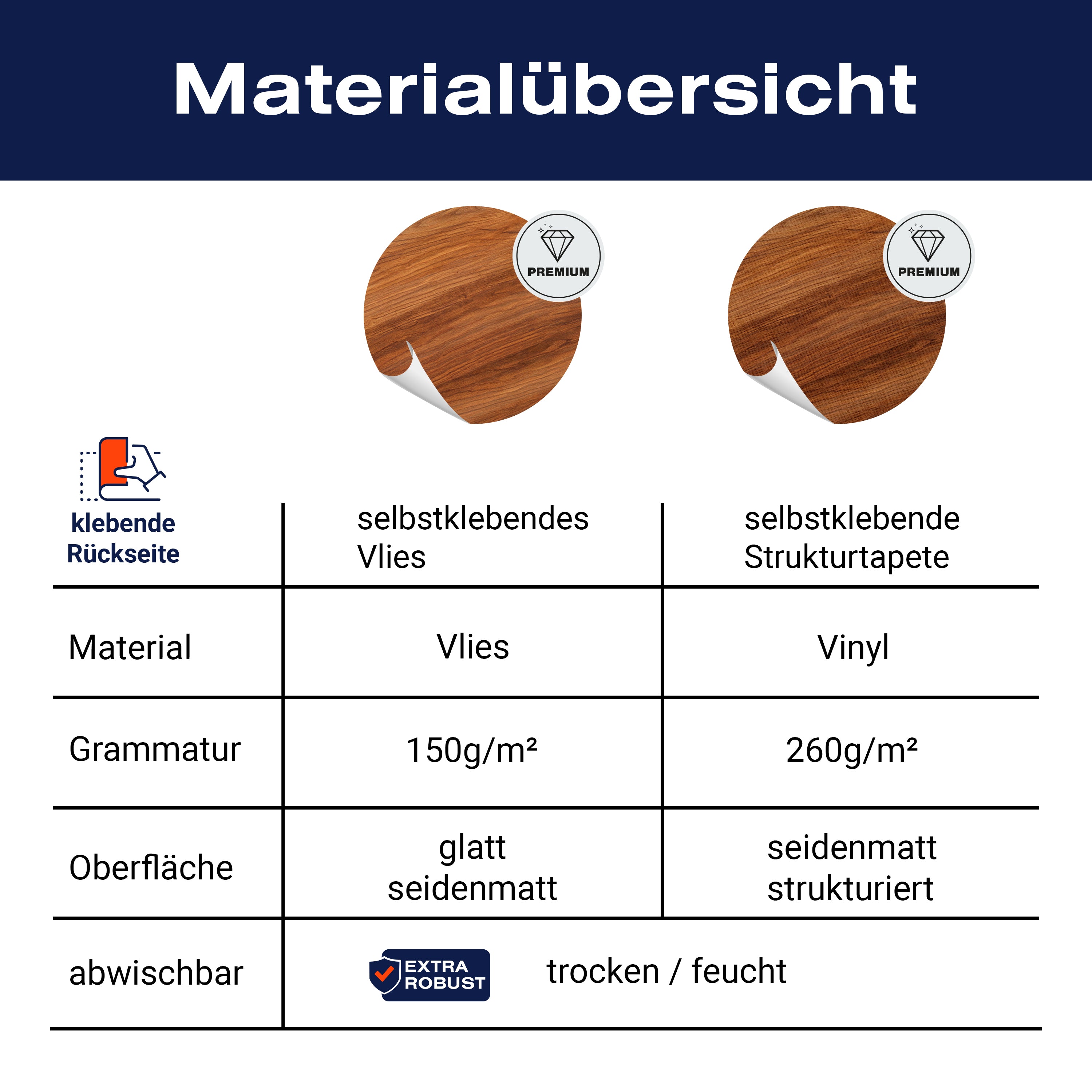 - Selbstklebendes Vlies 150g/m²: Einfach anzubringen, perfekt für Mietwohnungen.