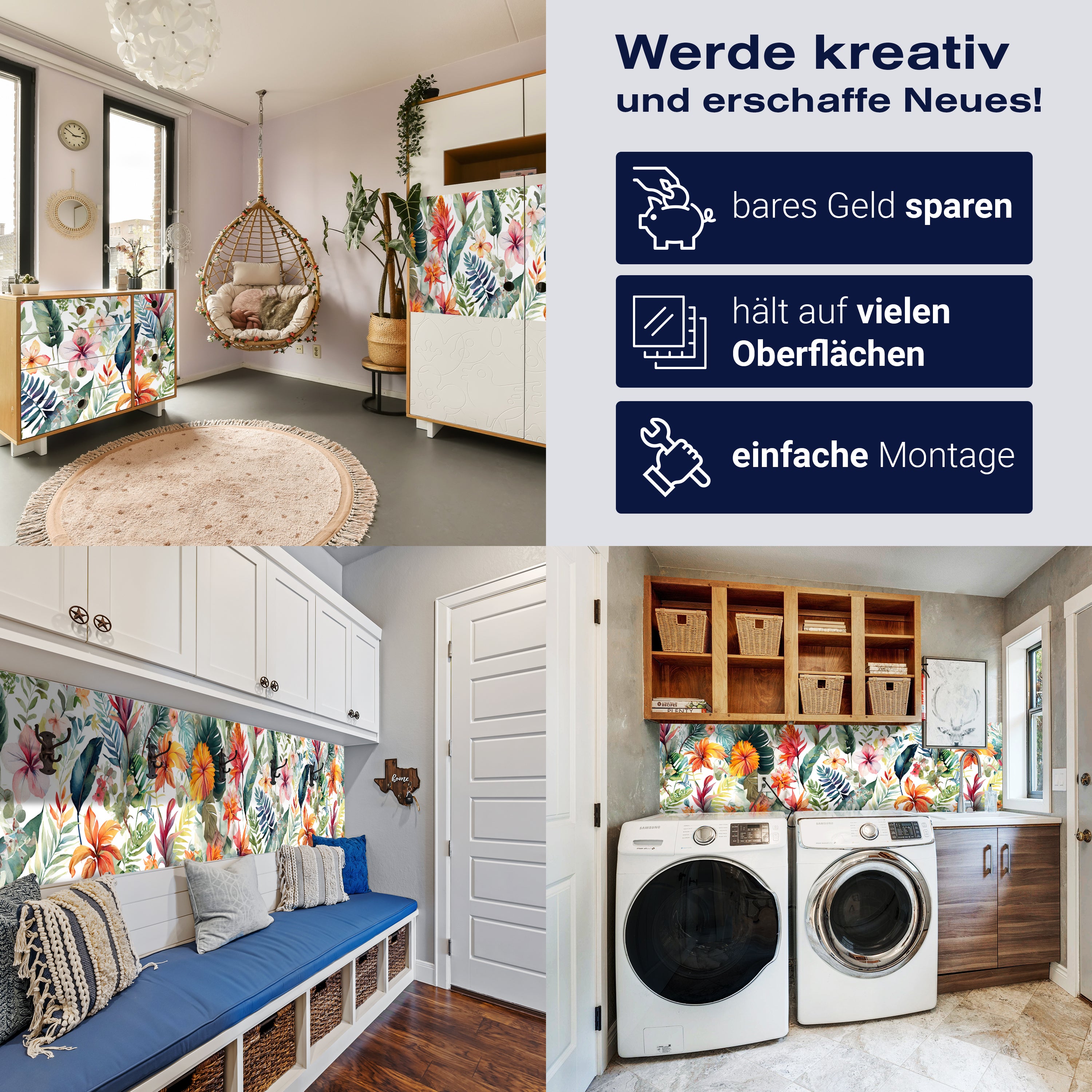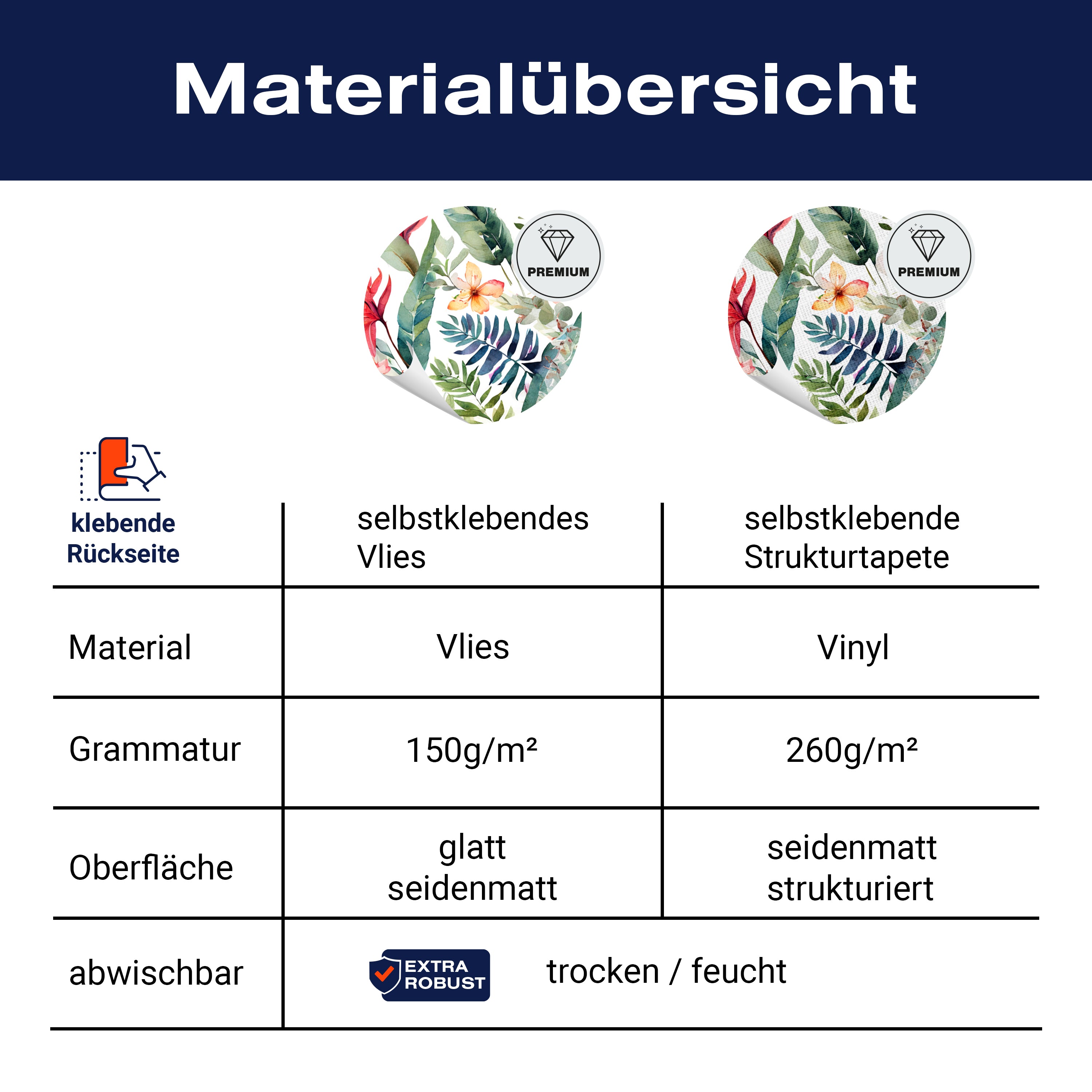 - Selbstklebendes Vlies 150g/m²: Einfach anzubringen, perfekt für Mietwohnungen.