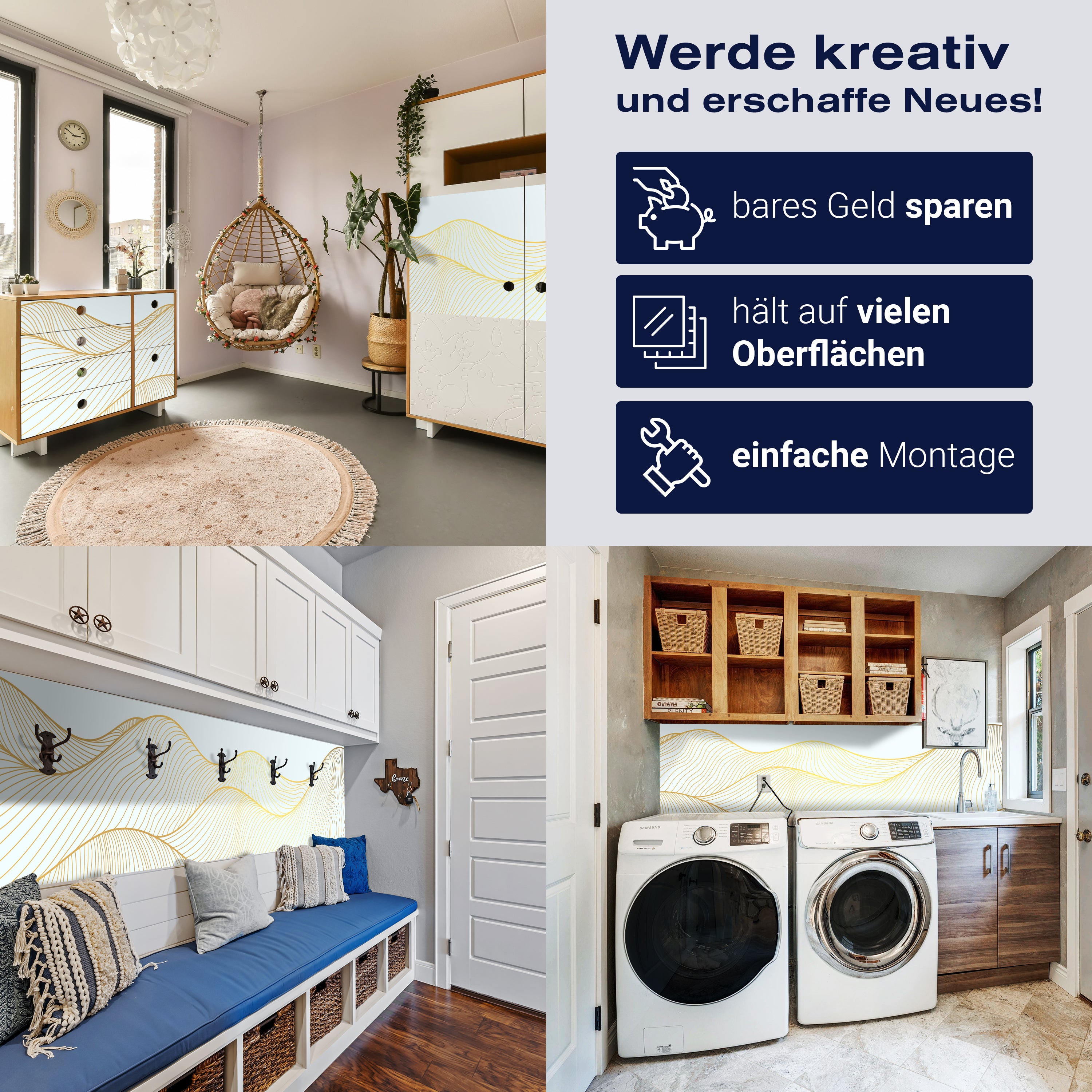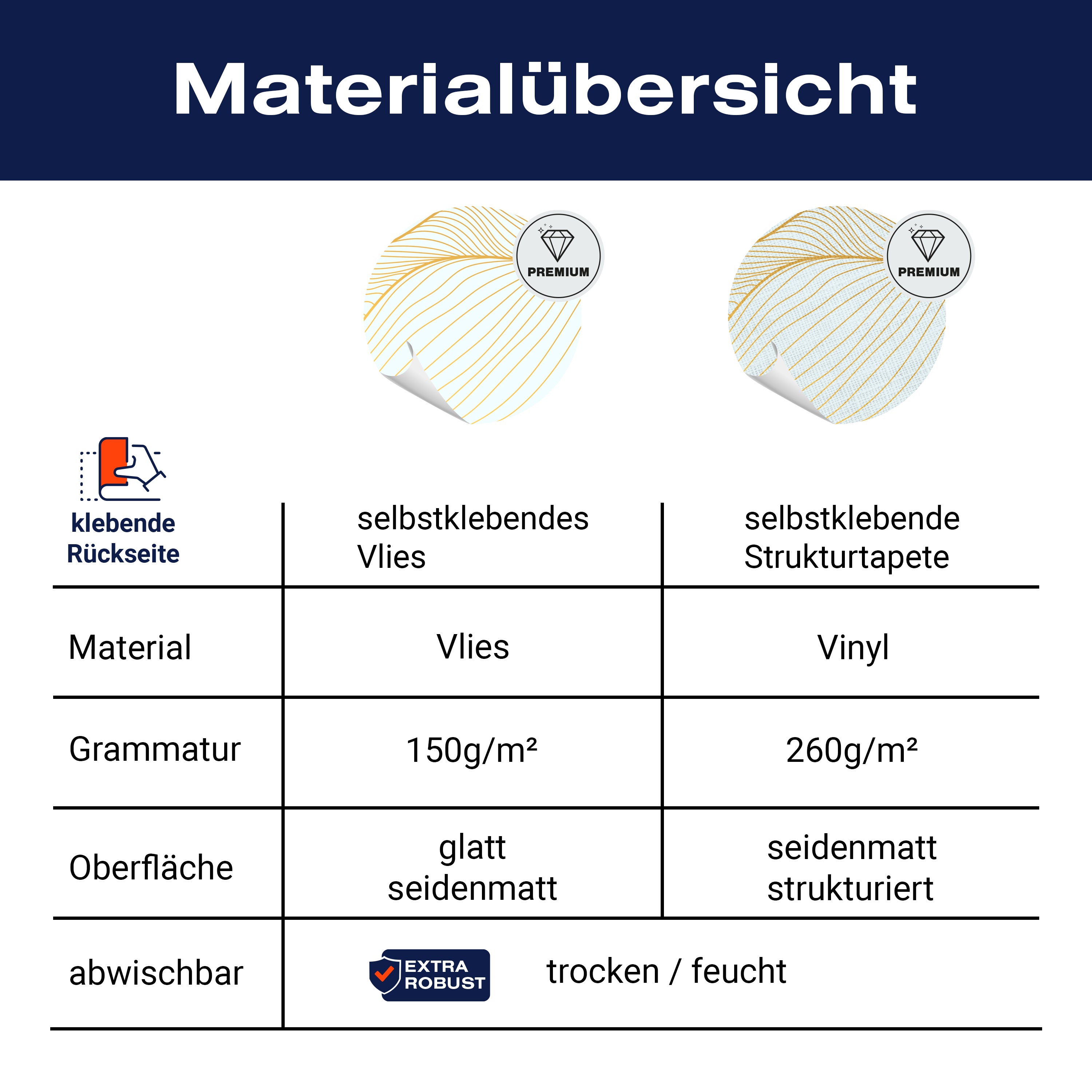 - Selbstklebendes Vlies 150g/m²: Einfach anzubringen, perfekt für Mietwohnungen.