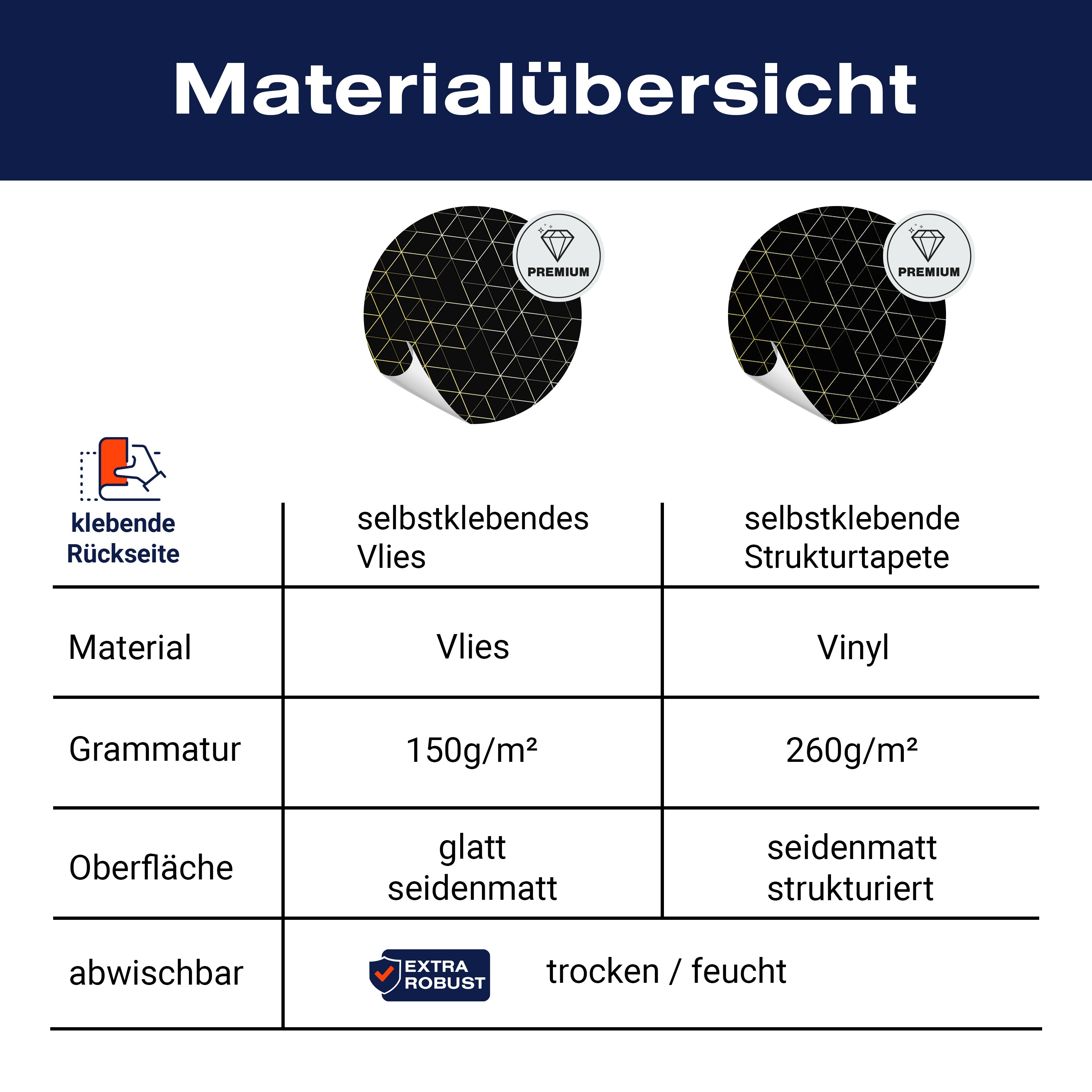 - Selbstklebendes Vlies 150g/m²: Einfach anzubringen, perfekt für Mietwohnungen.