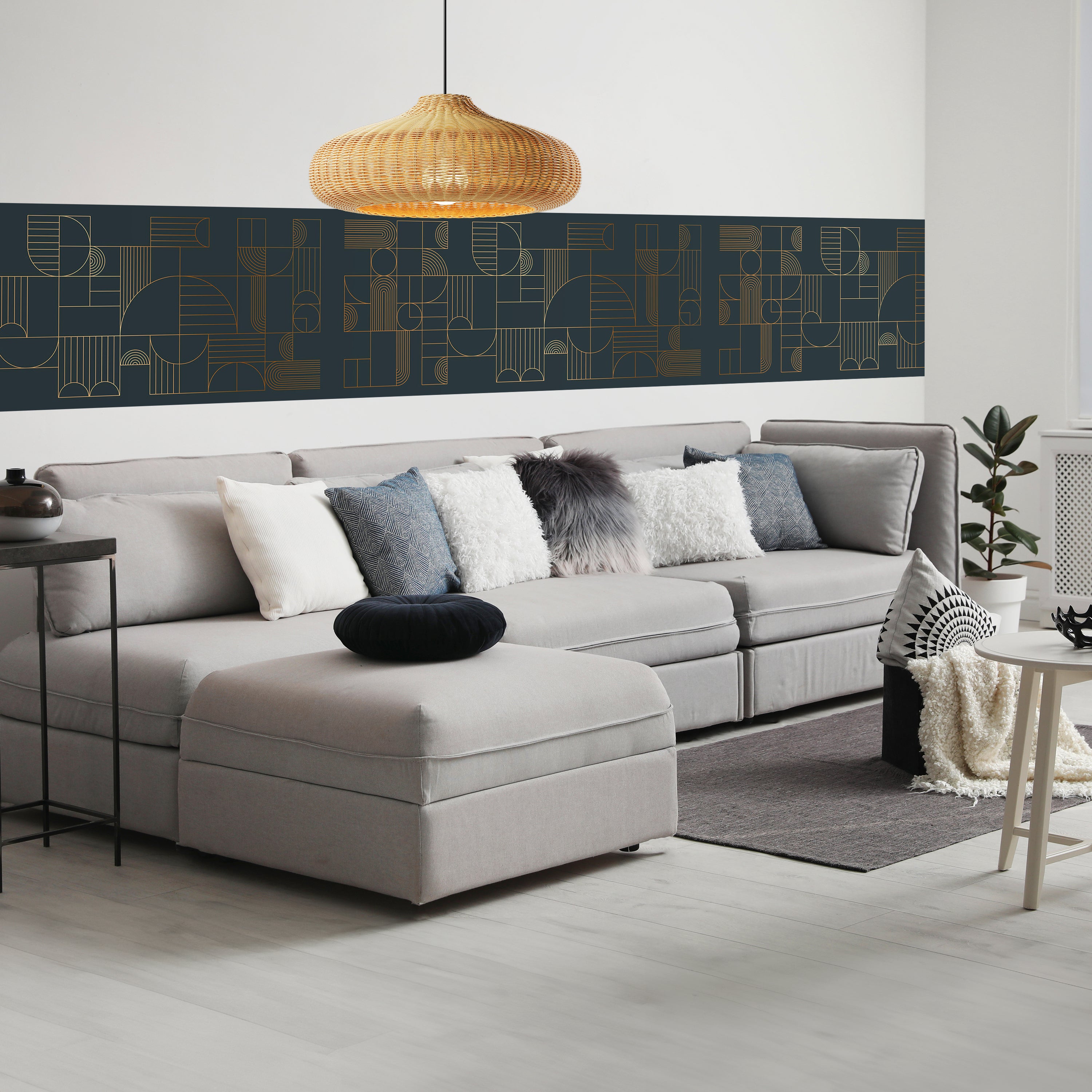 - Arbeite dich entlang der Wand vor und setze die nächste Bahn der selbstklebenden Strukturtapete nahtlos an. Achte darauf, dass die Muster oder Designs sauber ineinander übergehen.
