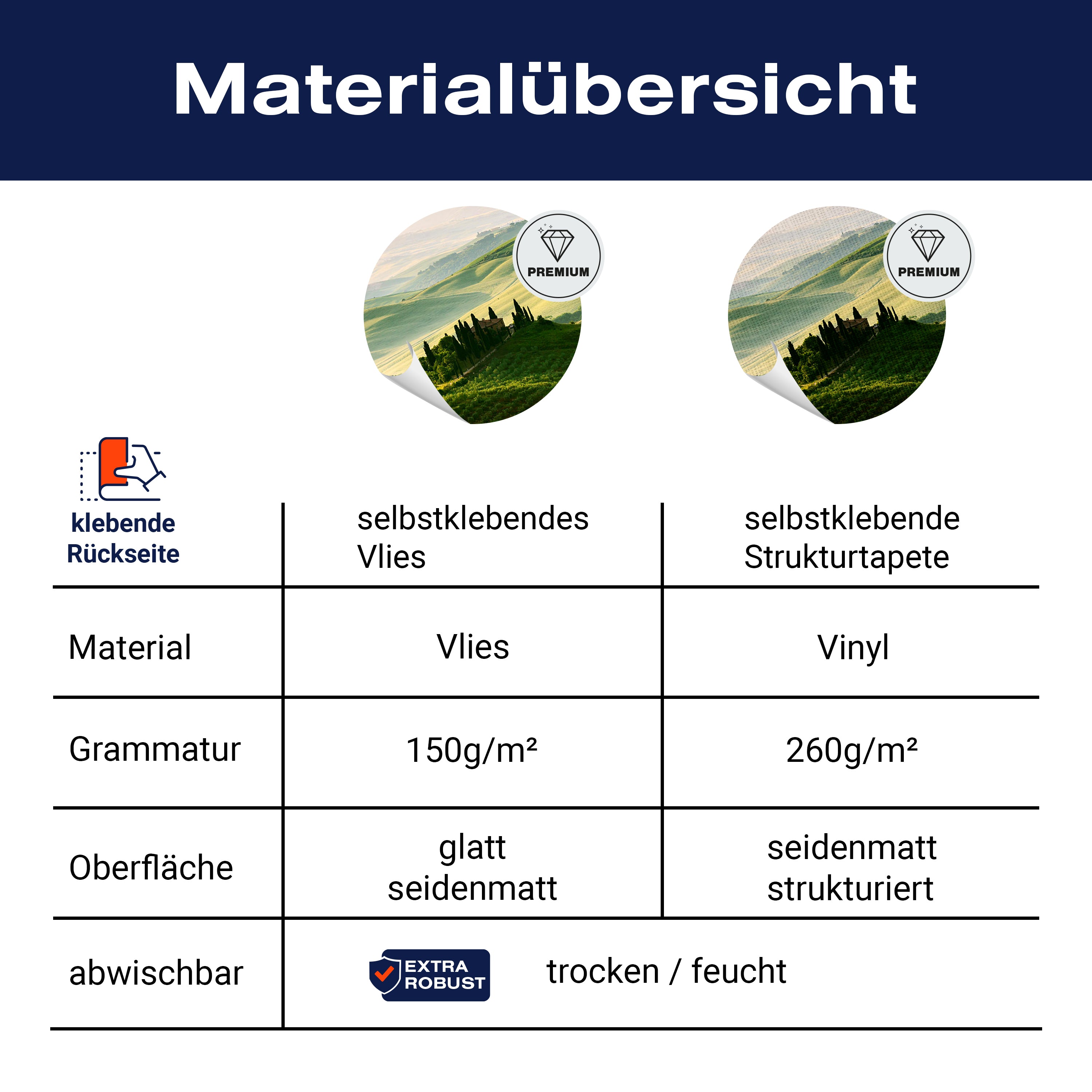 - Selbstklebendes Vlies 150g/m²: Einfach anzubringen, perfekt für Mietwohnungen.