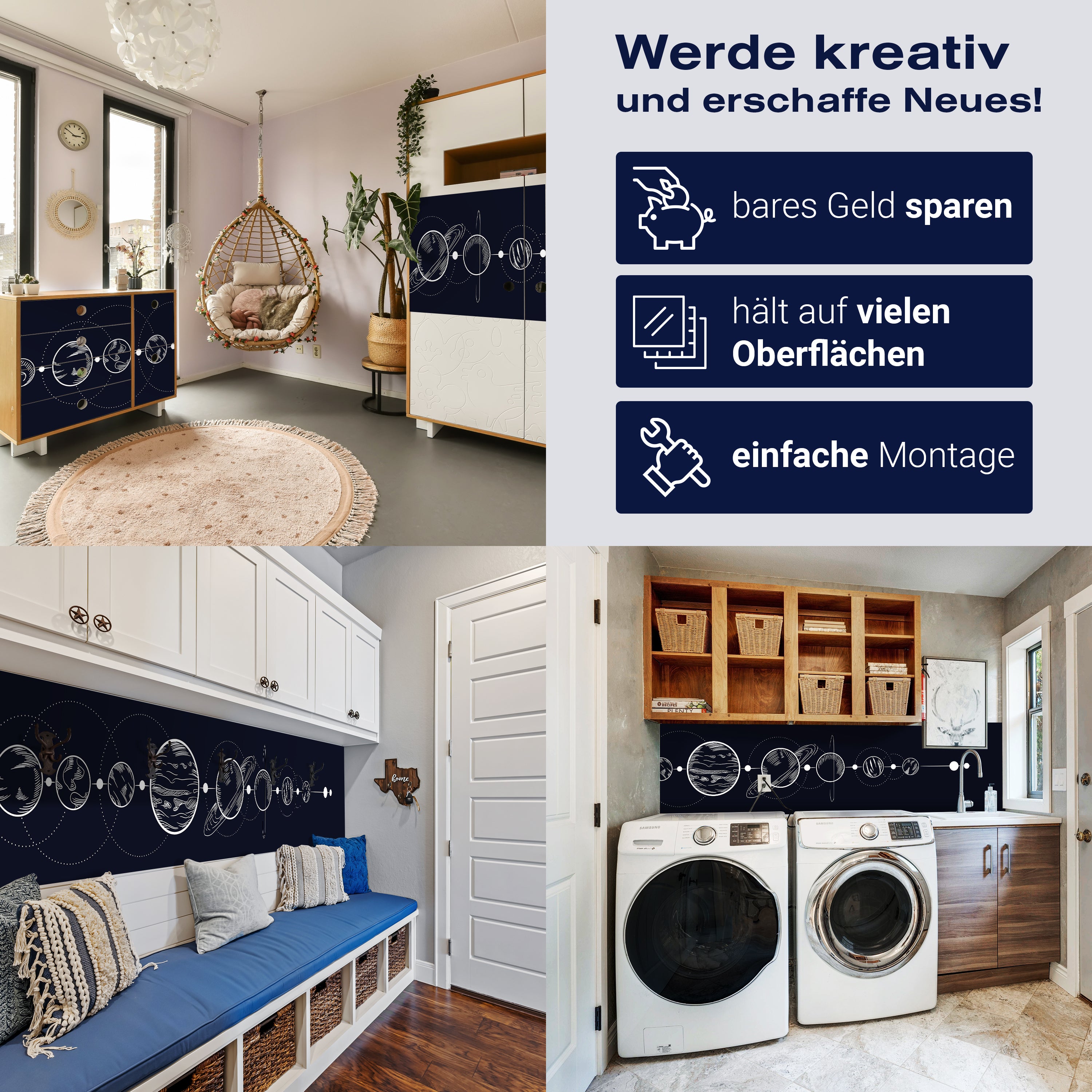 - Selbstklebendes Vlies 150g/m²: Einfach anzubringen, perfekt für Mietwohnungen.