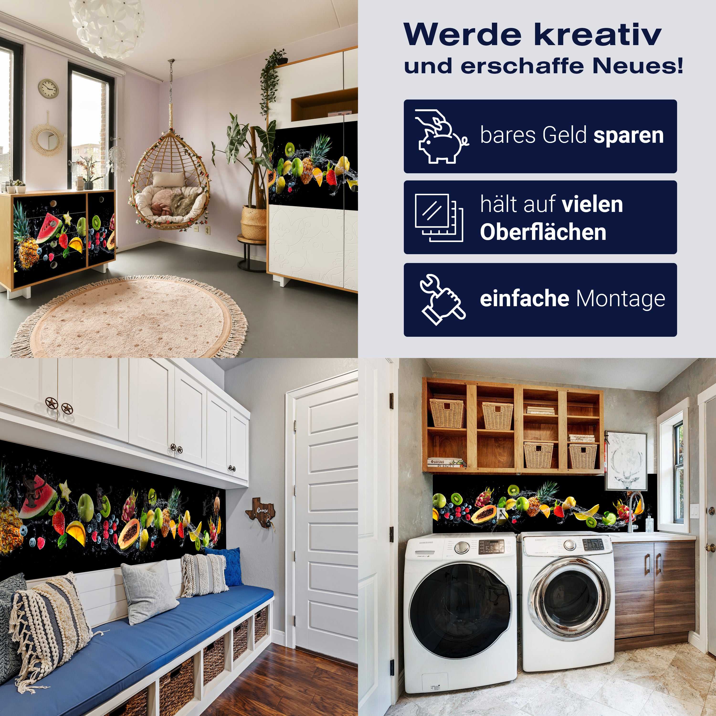 - Selbstklebendes Vlies 150g/m²: Einfach anzubringen, perfekt für Mietwohnungen.