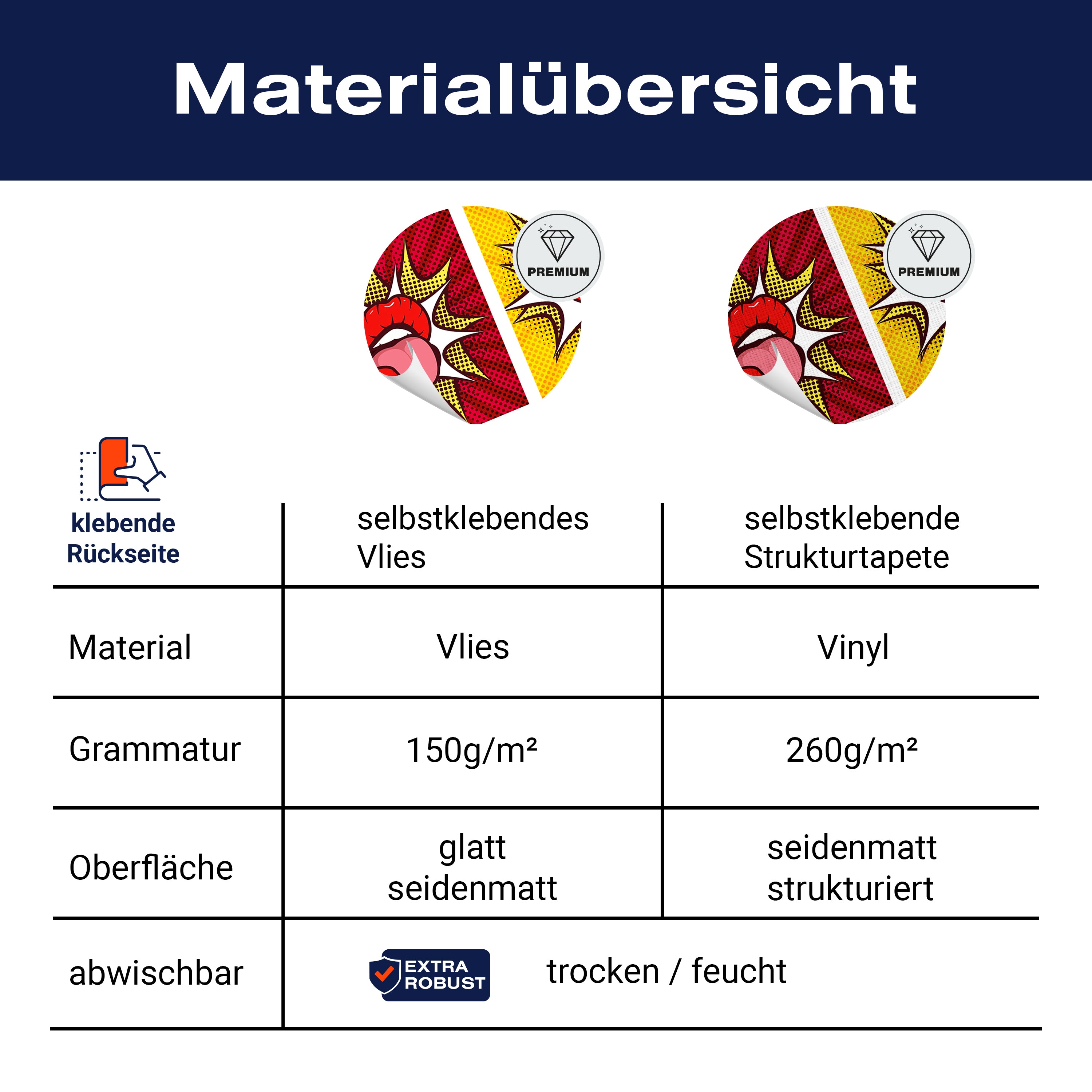 - Selbstklebendes Vlies 150g/m²: Einfach anzubringen, perfekt für Mietwohnungen.