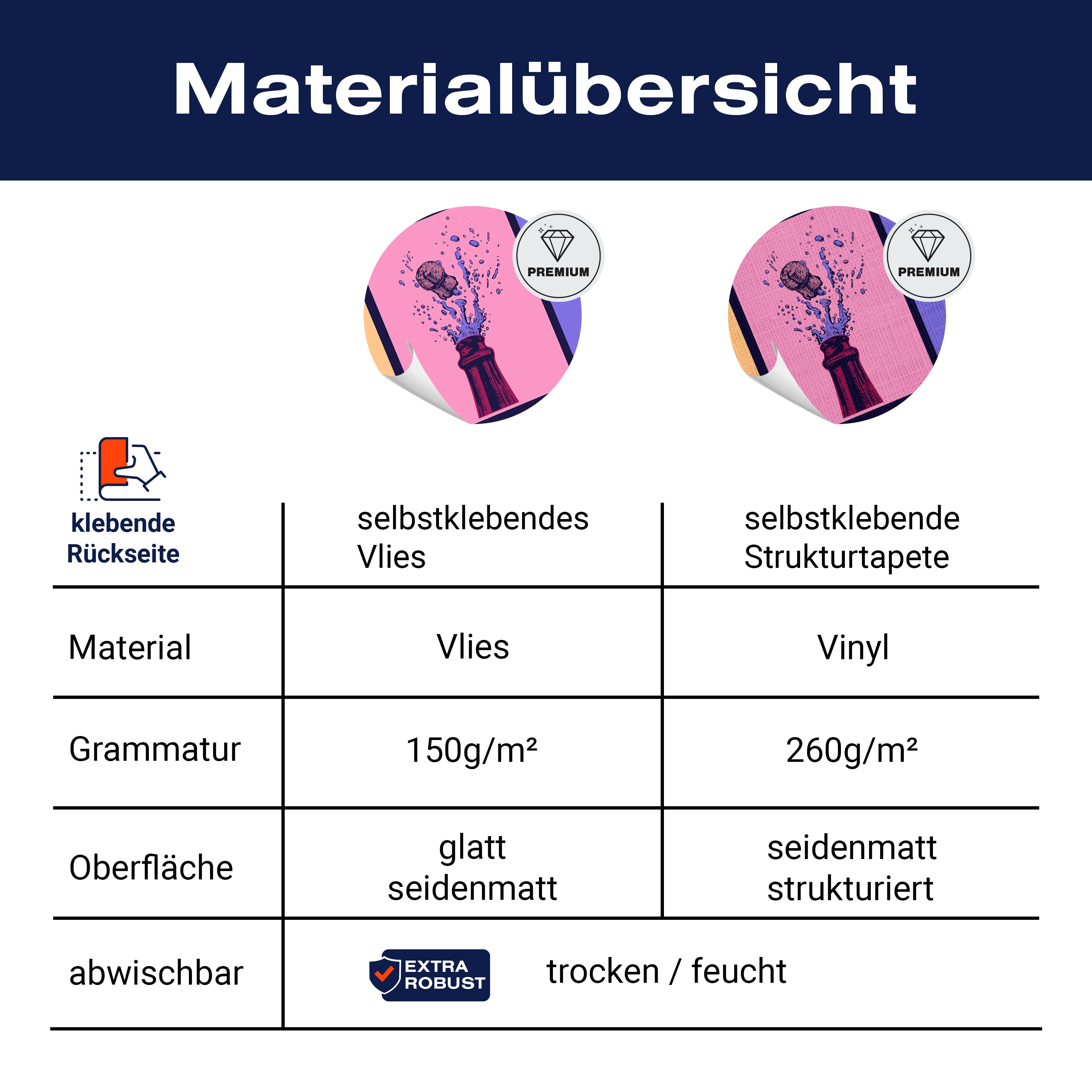 - Selbstklebendes Vlies 150g/m²: Einfach anzubringen, perfekt für Mietwohnungen.