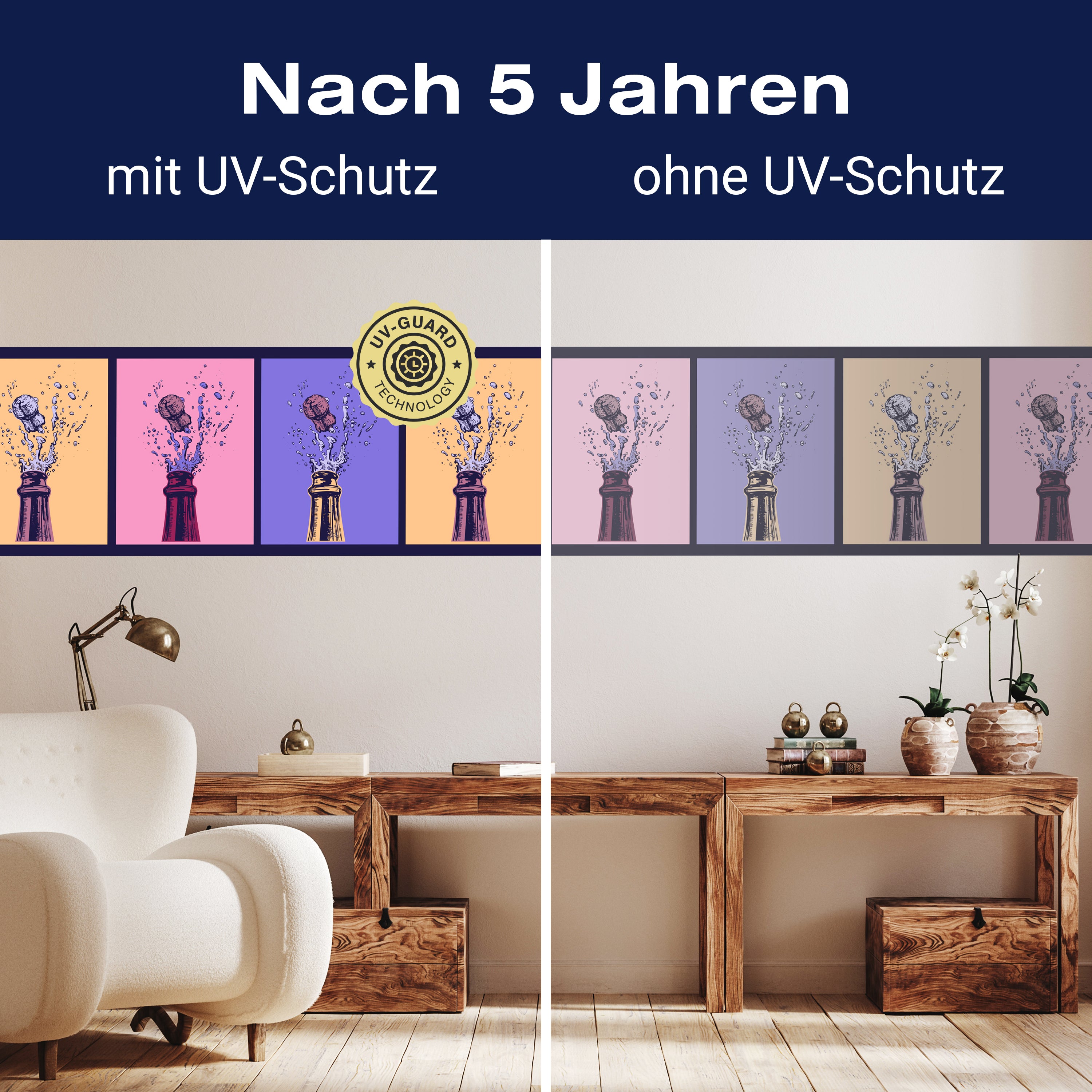 Setze auf die UV-Guard-Technologie, um deine selbstklebenden Panorama-Fototapeten nicht nur atemberaubend, sondern auch dauerhaft strahlend zu gestalten. Dieser fortschrittliche UV-Schutz sorgt dafür, dass die lebhaften Farben und scharfen Details deiner Wandgestaltung gegen die bleichende Wirkung der Sonnenstrahlen geschützt sind. Egal, wie intensiv das Sonnenlicht ist, die UV-Guard-Technologie bewahrt die Brillanz und Tiefe deiner Bilder, sodass sie jahrelang wie neu aussehen. Mach dir keine Sorgen mehr über verblassende Farben oder den Verlust von Detailreichtum. Mit dieser Technologie investierst du in die Langlebigkeit und Schönheit deiner Räume. Steige jetzt um auf UV-Guard und genieße ungetrübte Farbenpracht bei jedem Licht.