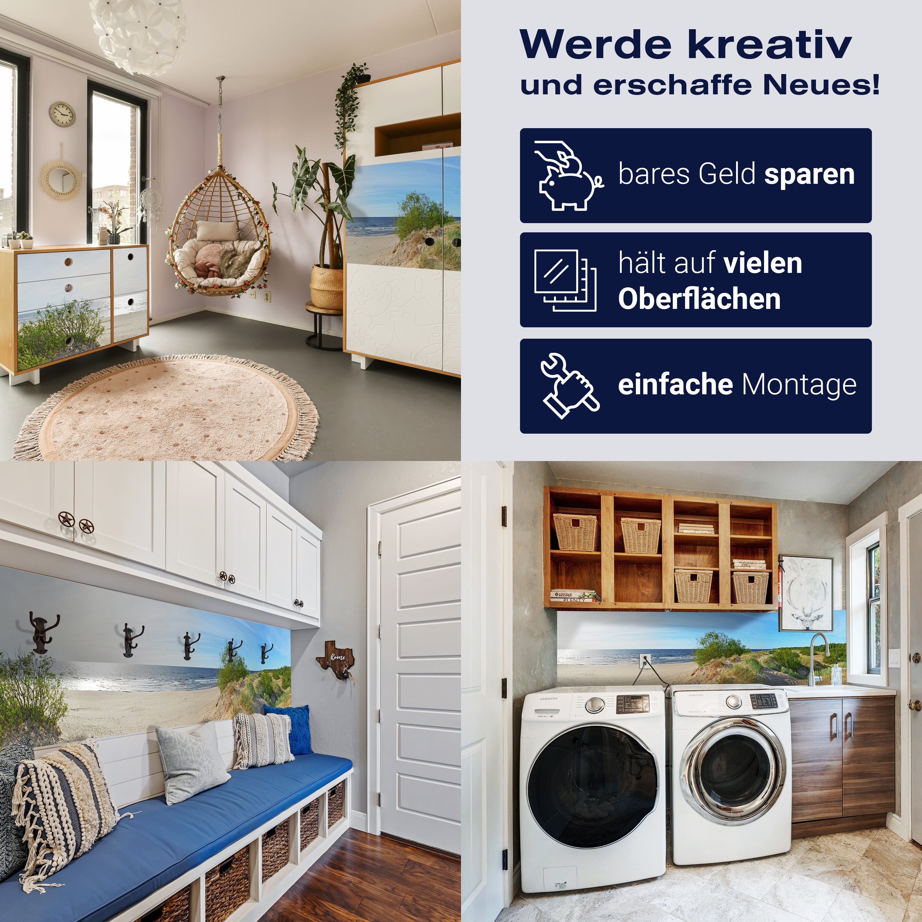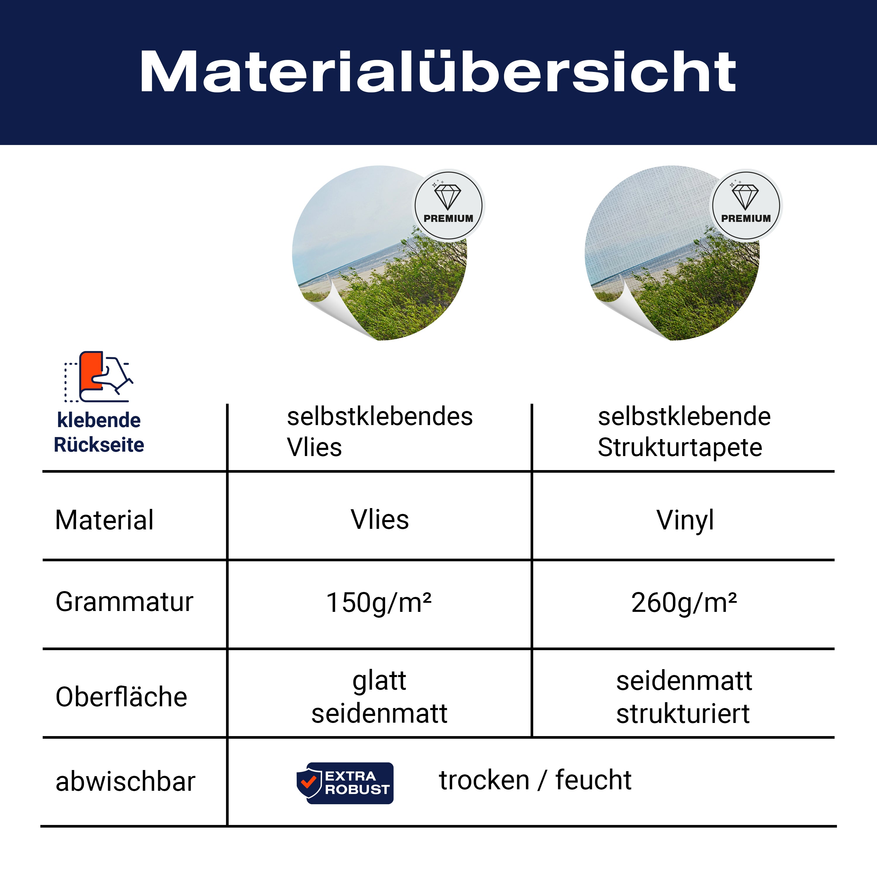 - Selbstklebendes Vlies 150g/m²: Einfach anzubringen, perfekt für Mietwohnungen.