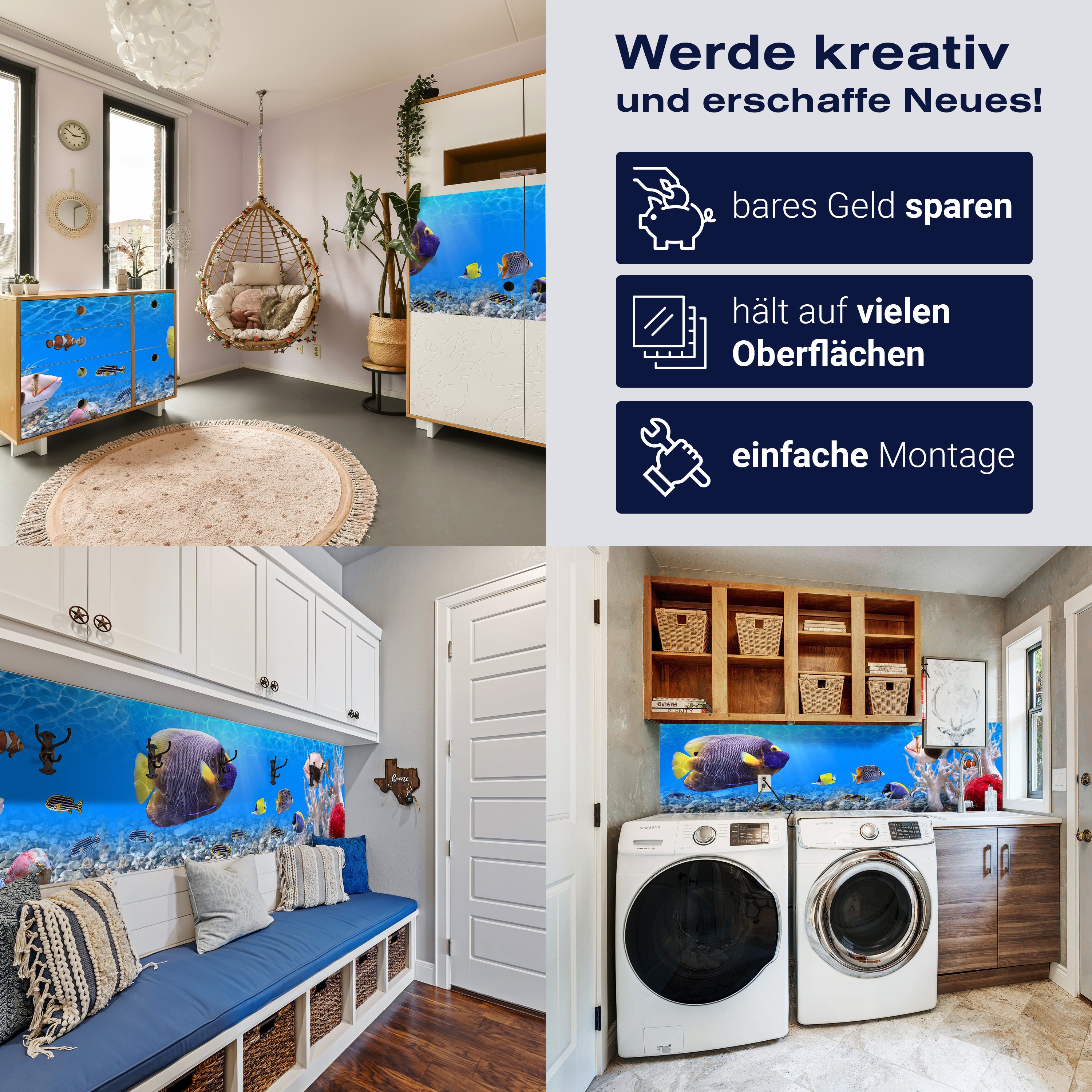 Träumst Du davon, Deine Wände in eine beeindruckende Kunstgalerie zu verwandeln? Mit unserer hochwertigen Panorama-Fototapete Unterwasserwelt 1 M0001 ist es jetzt möglich! Jede Wand wird zu einer Leinwand Deiner Kreativität.