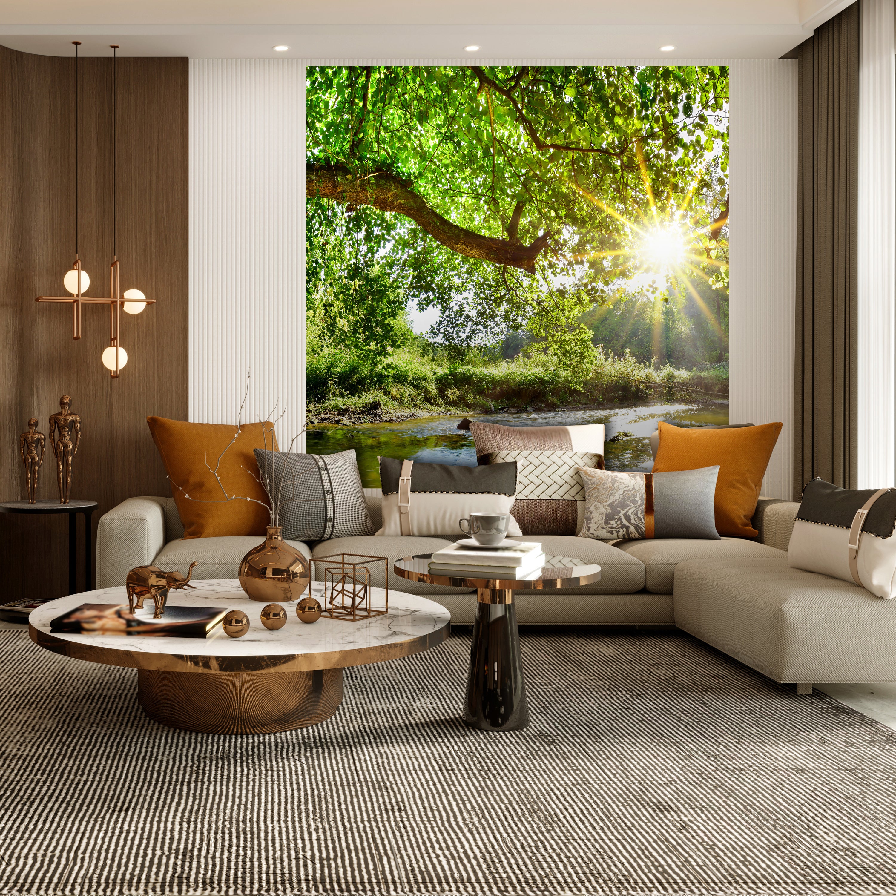 Träumst Du davon, Deine Wände in eine beeindruckende Kunstgalerie zu verwandeln? Mit unserer hochwertigen, quadratischen Fototapete Wald mit Fluss M0061 ist es jetzt möglich! Jede Wand wird zu einer Leinwand Deiner Kreativität.