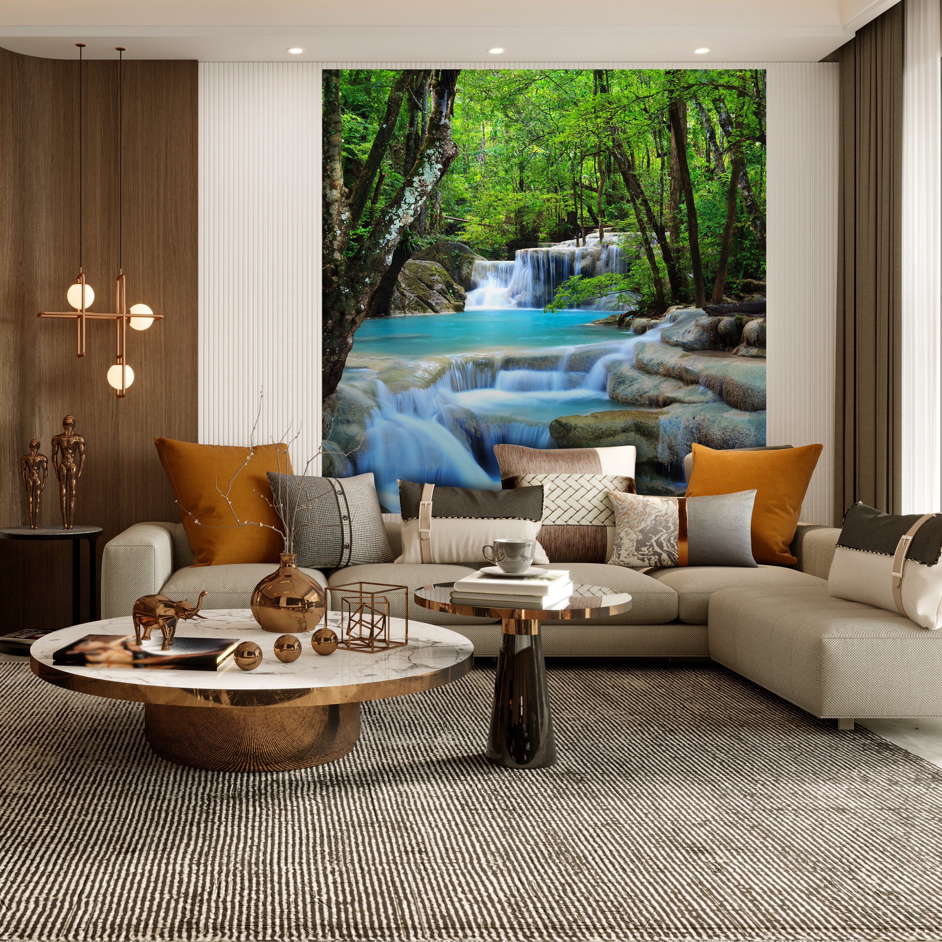 QUADRATISCHE FOTOTAPETE Wasserfall im Wald