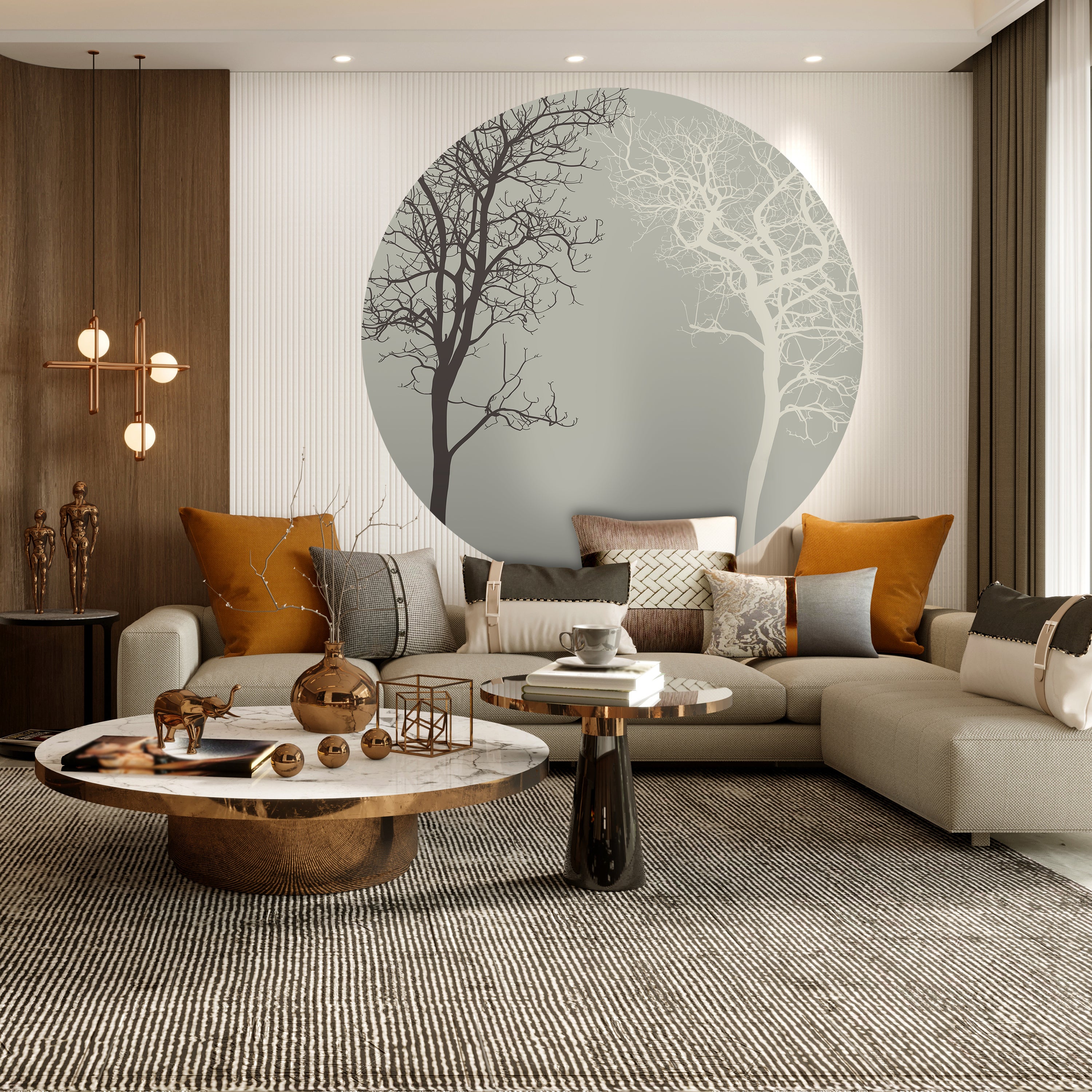 RUNDE FOTOTAPETE Silhouetten von Bäumen