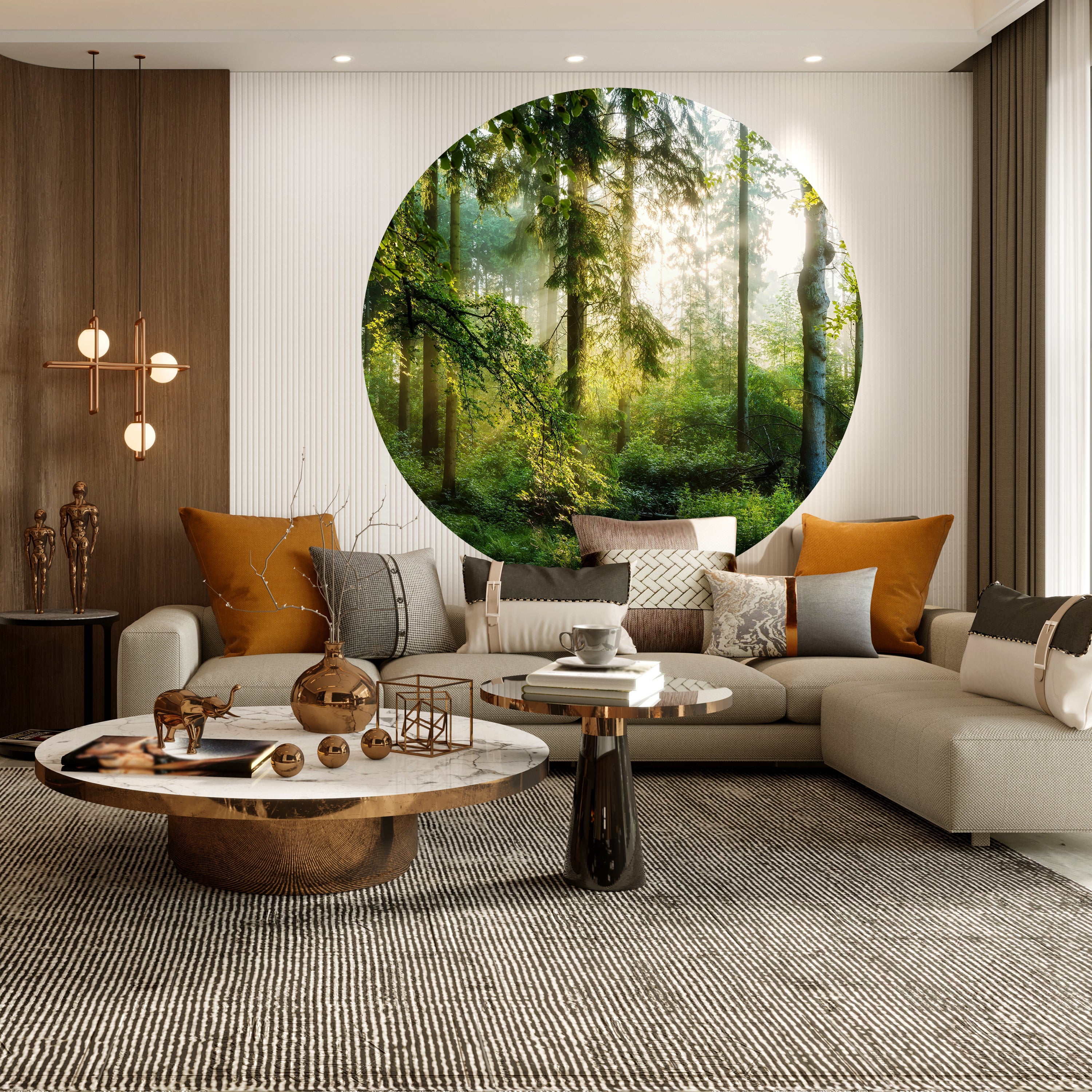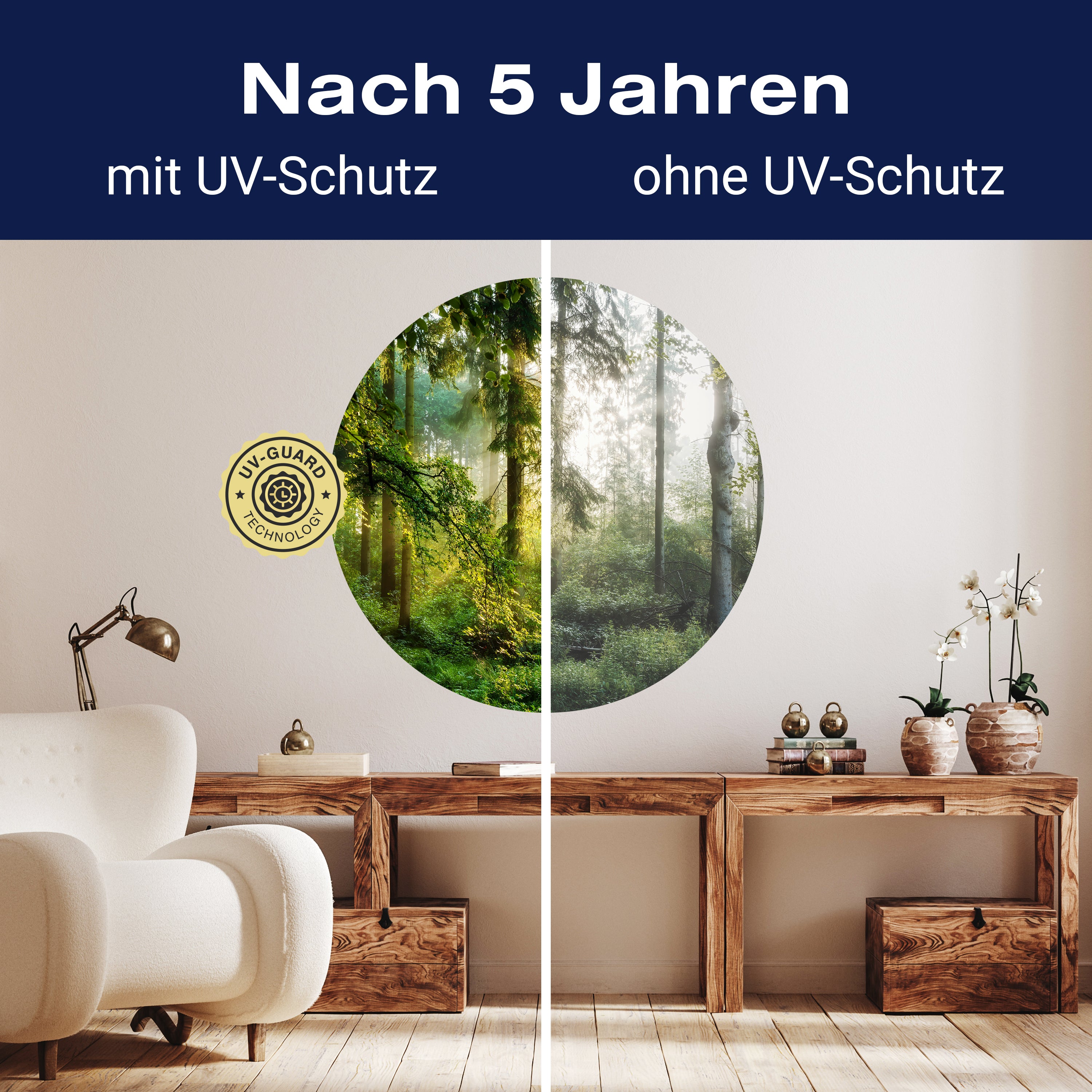 Träumst Du davon, Deine Wände in eine beeindruckende Kunstgalerie zu verwandeln? Mit unserer hochwertigen, runden Fototapete Wald Wiese Bäume M0060 ist es jetzt möglich! Jede Wand wird zu einer Leinwand Deiner Kreativität.