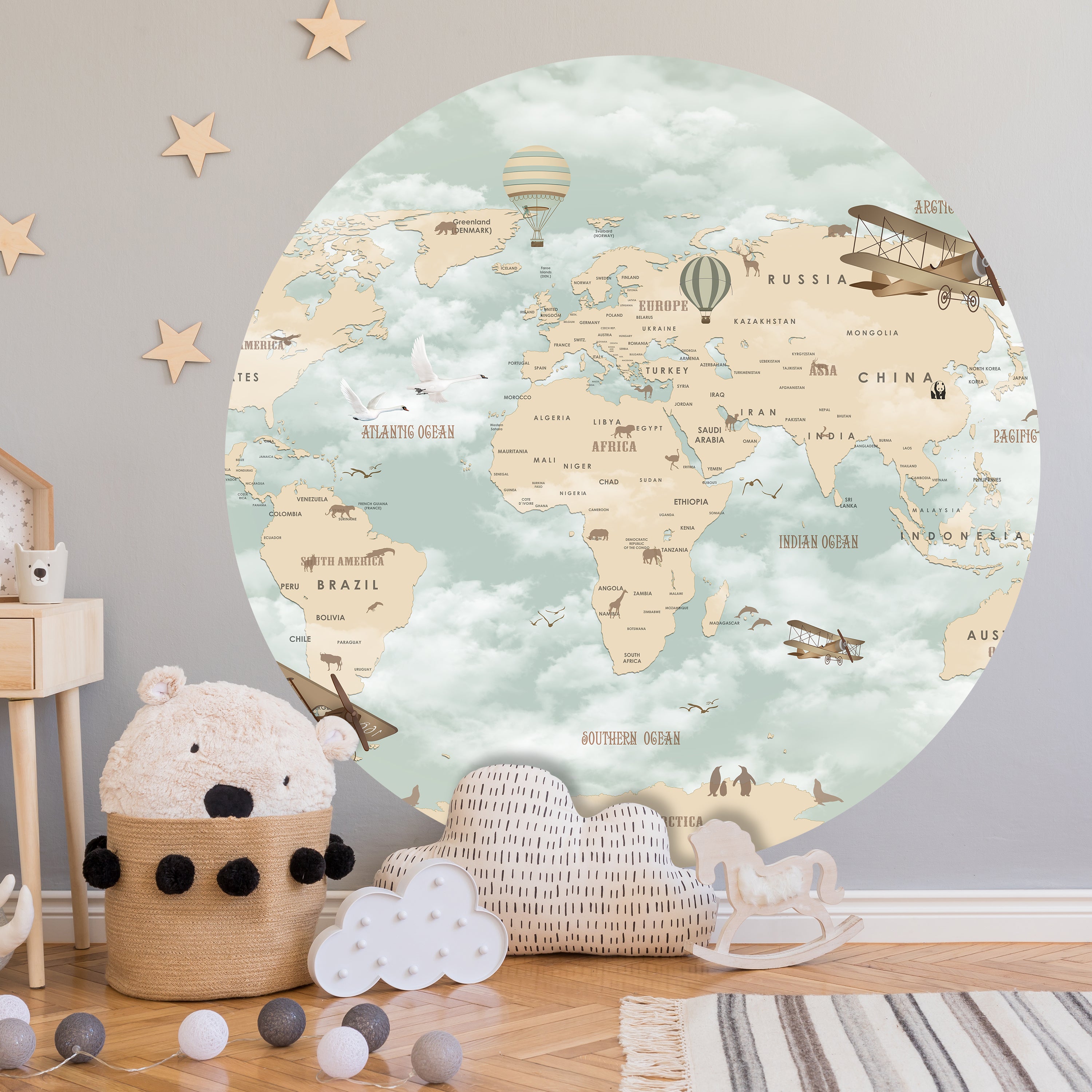 RUNDE FOTOTAPETE Weltkarte für Kinder