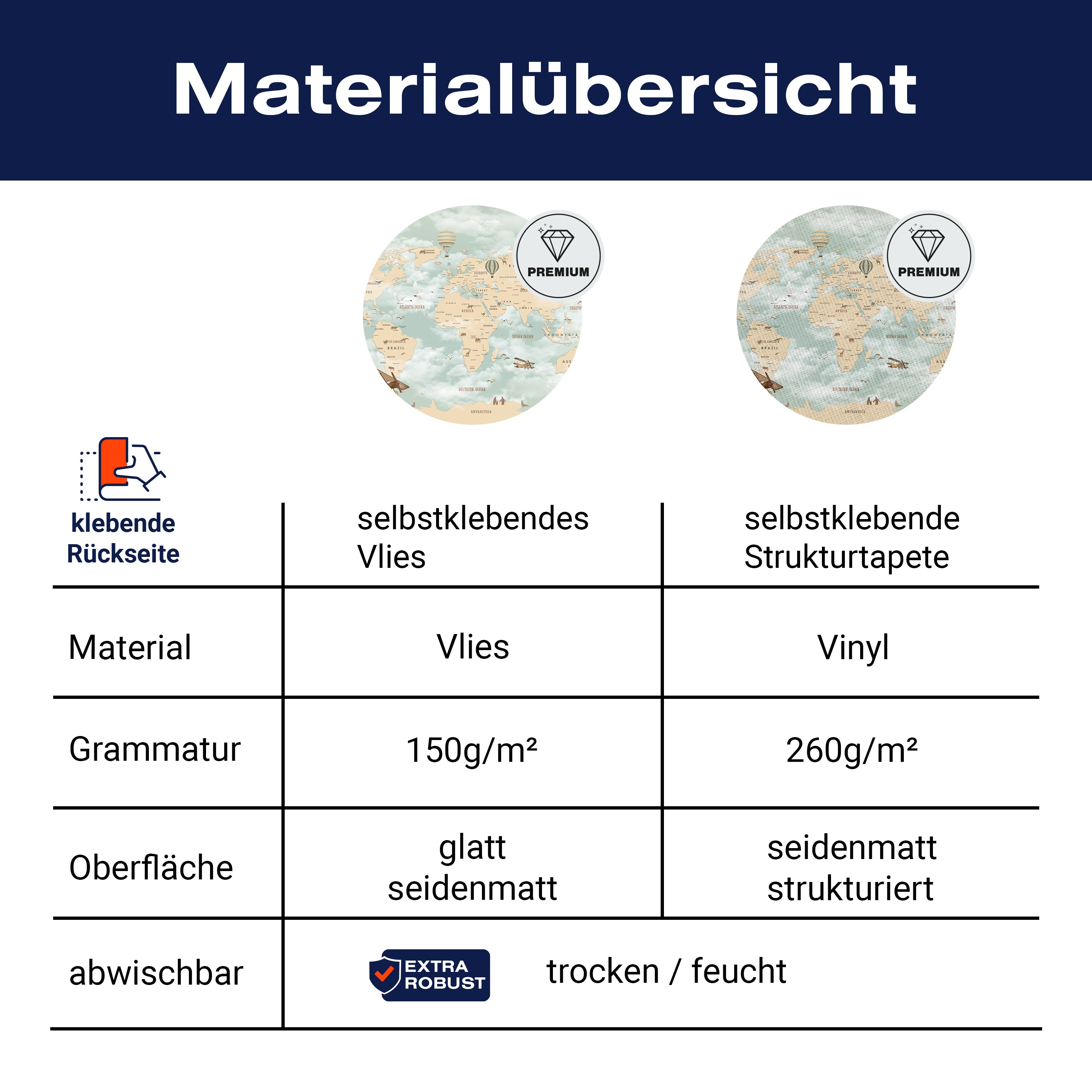- Selbstklebendes Vlies 150g/m²: Einfach anzubringen, perfekt für Mietwohnungen.