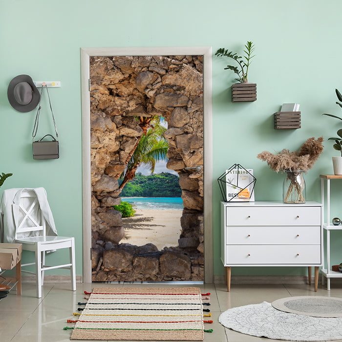 Entdecke die Türtapete 3D Steine, Palmen, Insel, Strand, Meer