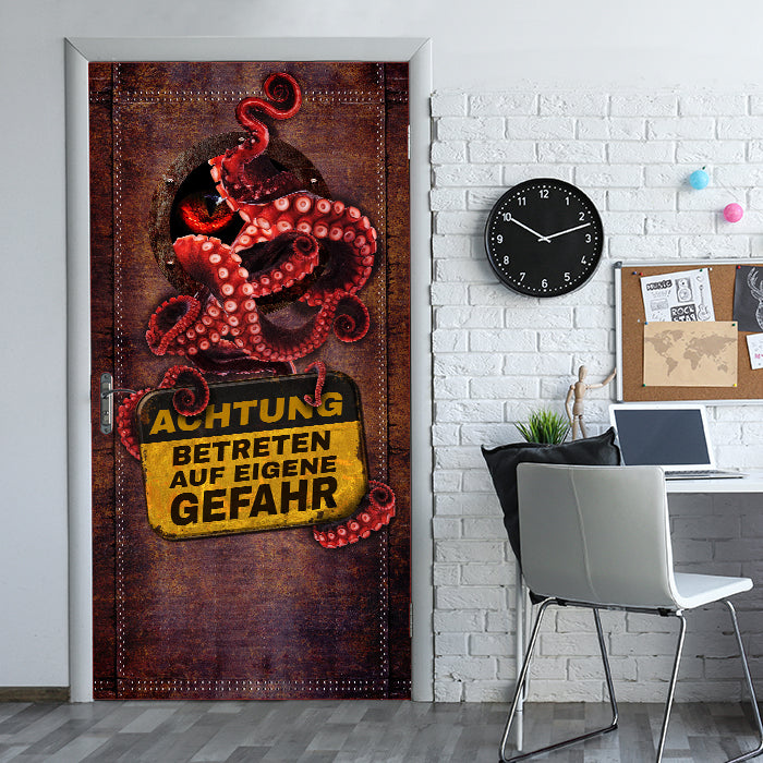 Entdecke die Türtapete ACHTUNG! Rostige Tür, Krake, Tintenfisch