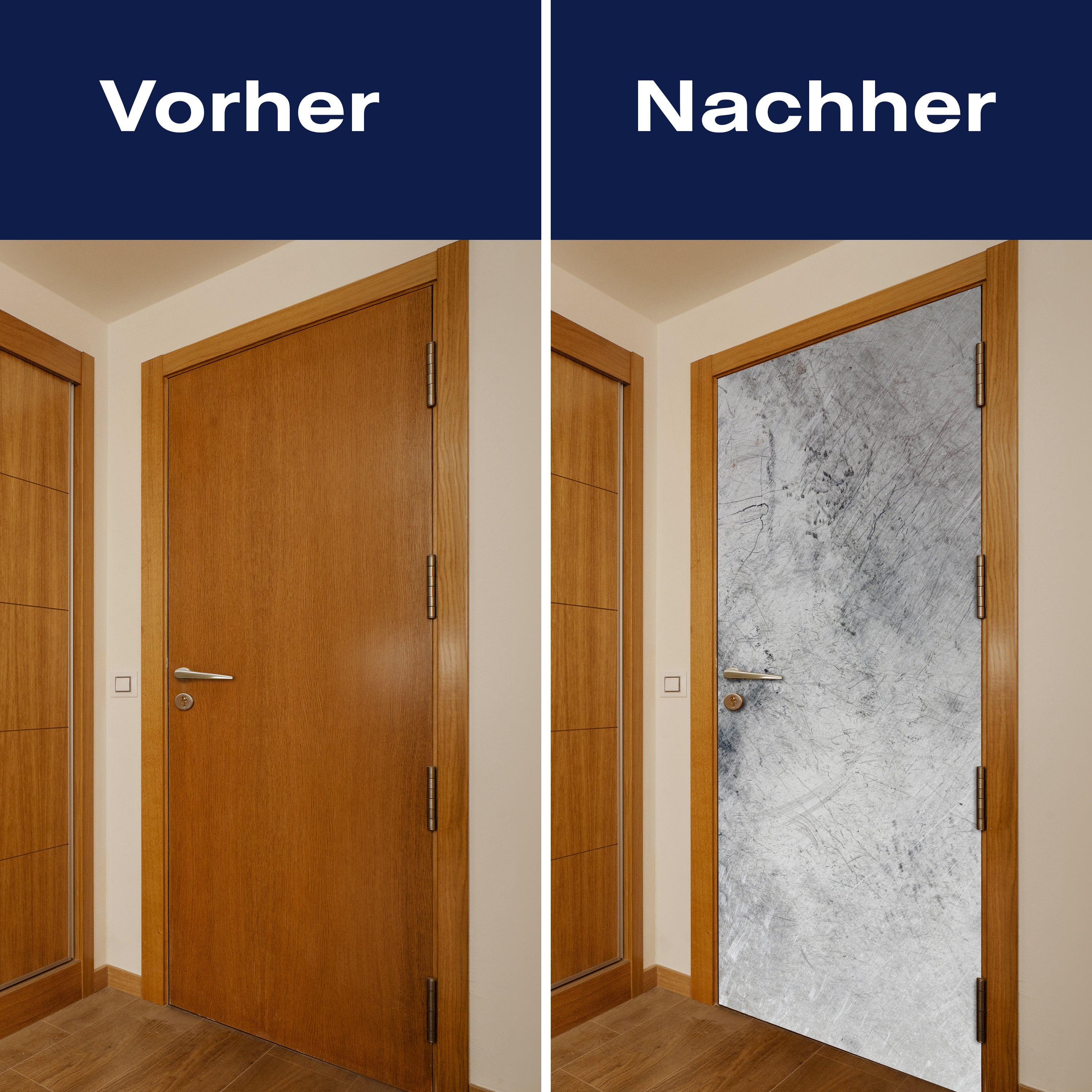 - Drücke die Kanten und Ecken der Türfolie vorsichtig an, um sicherzustellen, dass sie gut haften und keine Ablösungen entstehen.