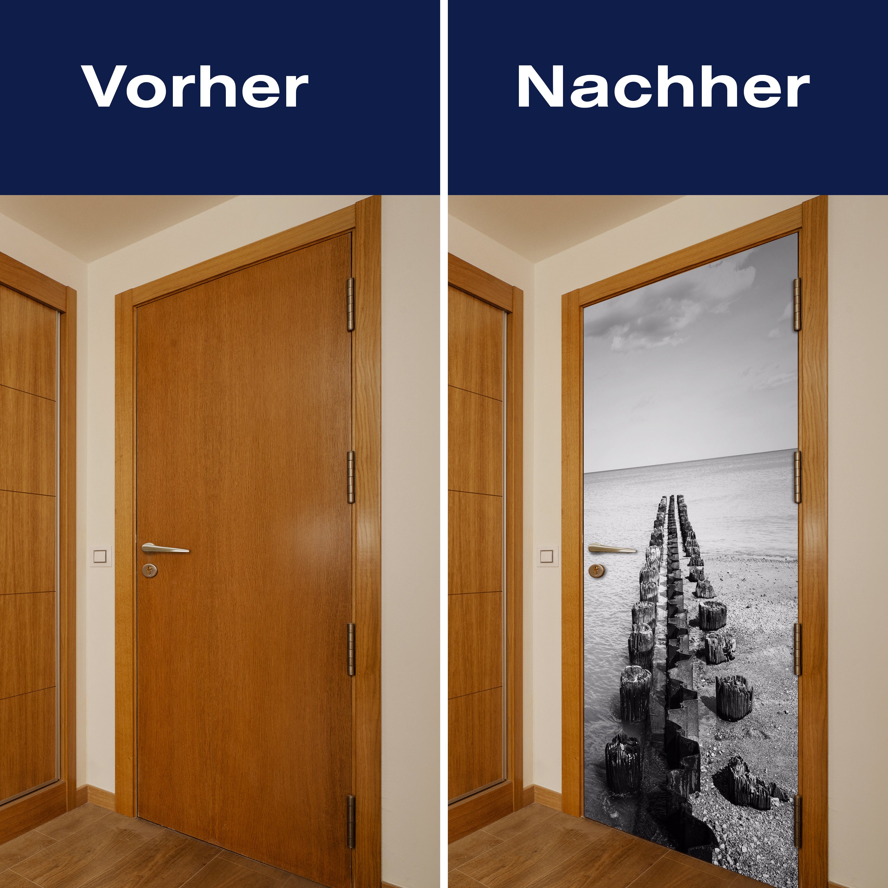 Hast du jemals darüber nachgedacht, wie eine einfache Veränderung deinen Wohnraum komplett umgestalten kann? Die Türtapete alter Holz-steg im Meer, Steine, Ozean von Wandmotiv24 ist genau das, was du brauchst, um deinem Zuhause einen Hauch von Einzigartigkeit und Stil zu verleihen. Dieses einzigartige Design erzielt eine atemberaubende visuelle Wirkung, die jeden Betrachter in den Bann zieht.