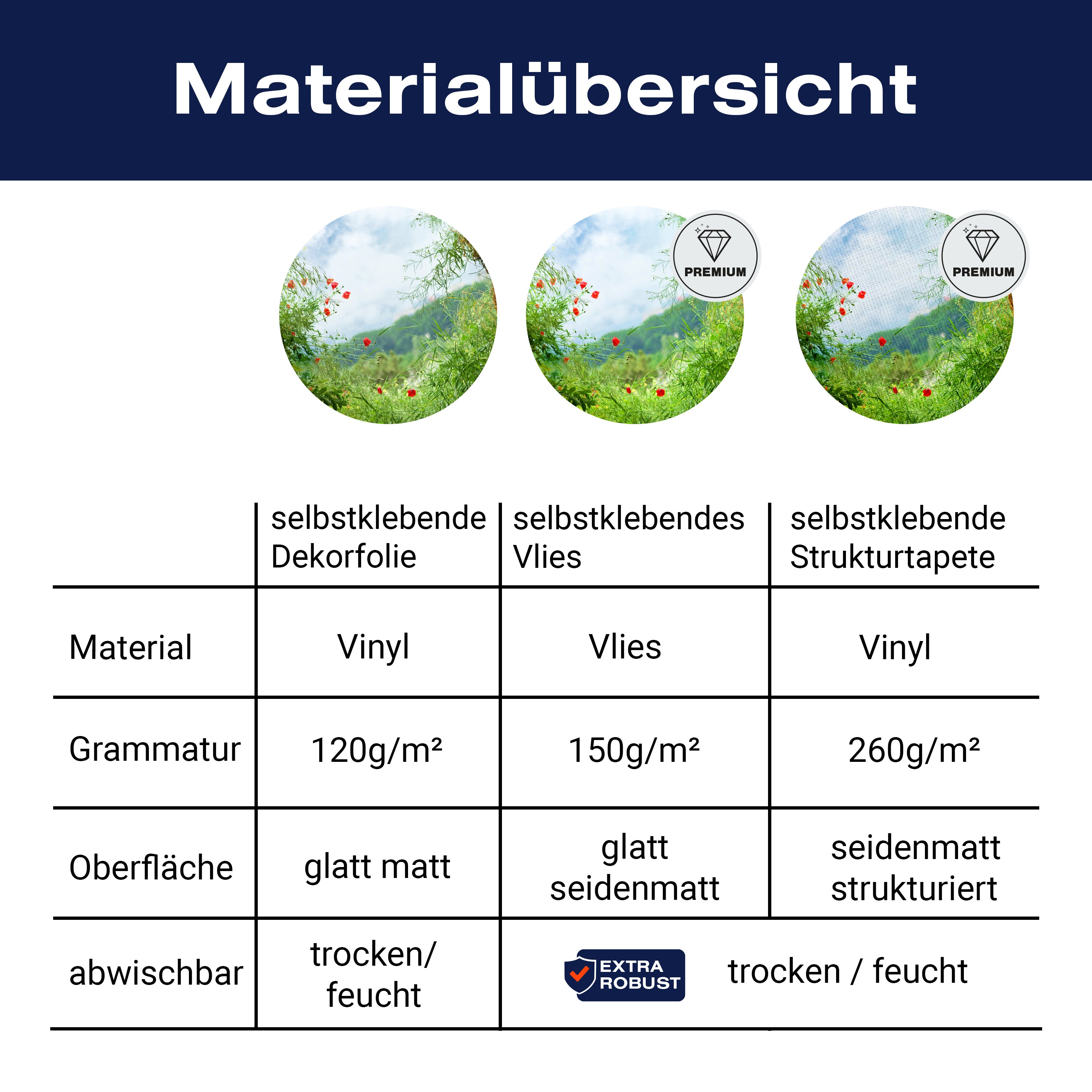 Sag ade zu komplizierten Anbringungsprozessen. Unsere Türtapeten, verfügbar in den Größen von 70x200 cm bis 100x200 cm, ermöglichen eine kinderleichte Installation. Wähle zwischen selbstklebender Dekorfolie, Vlies 150g oder Strukturtapete 260g, um deinem Zuhause einen Hauch von Eleganz zu verleihen.