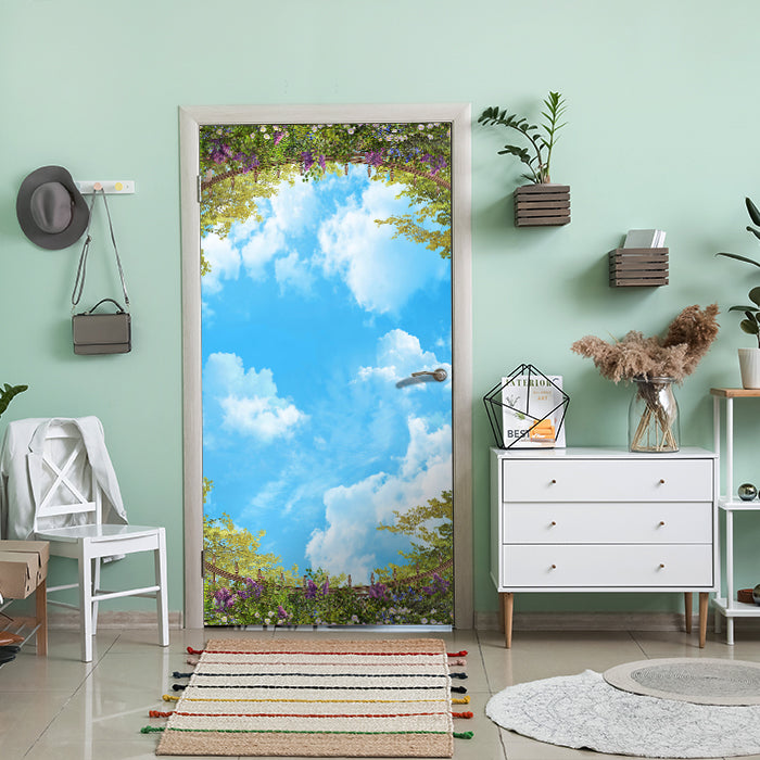 Entdecke die Türtapete Blick in den Himmel, Wolken, Pflanzen