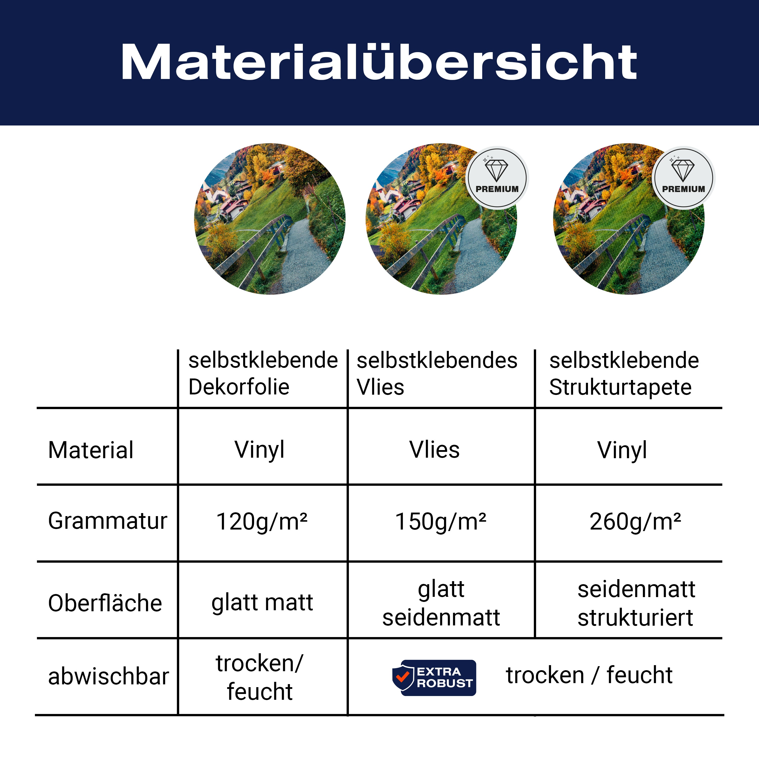 Sag ade zu komplizierten Anbringungsprozessen. Unsere Türtapeten, verfügbar in den Größen von 70x200 cm bis 100x200 cm, ermöglichen eine kinderleichte Installation. Wähle zwischen selbstklebender Dekorfolie, Vlies 150g oder Strukturtapete 260g, um deinem Zuhause einen Hauch von Eleganz zu verleihen.
