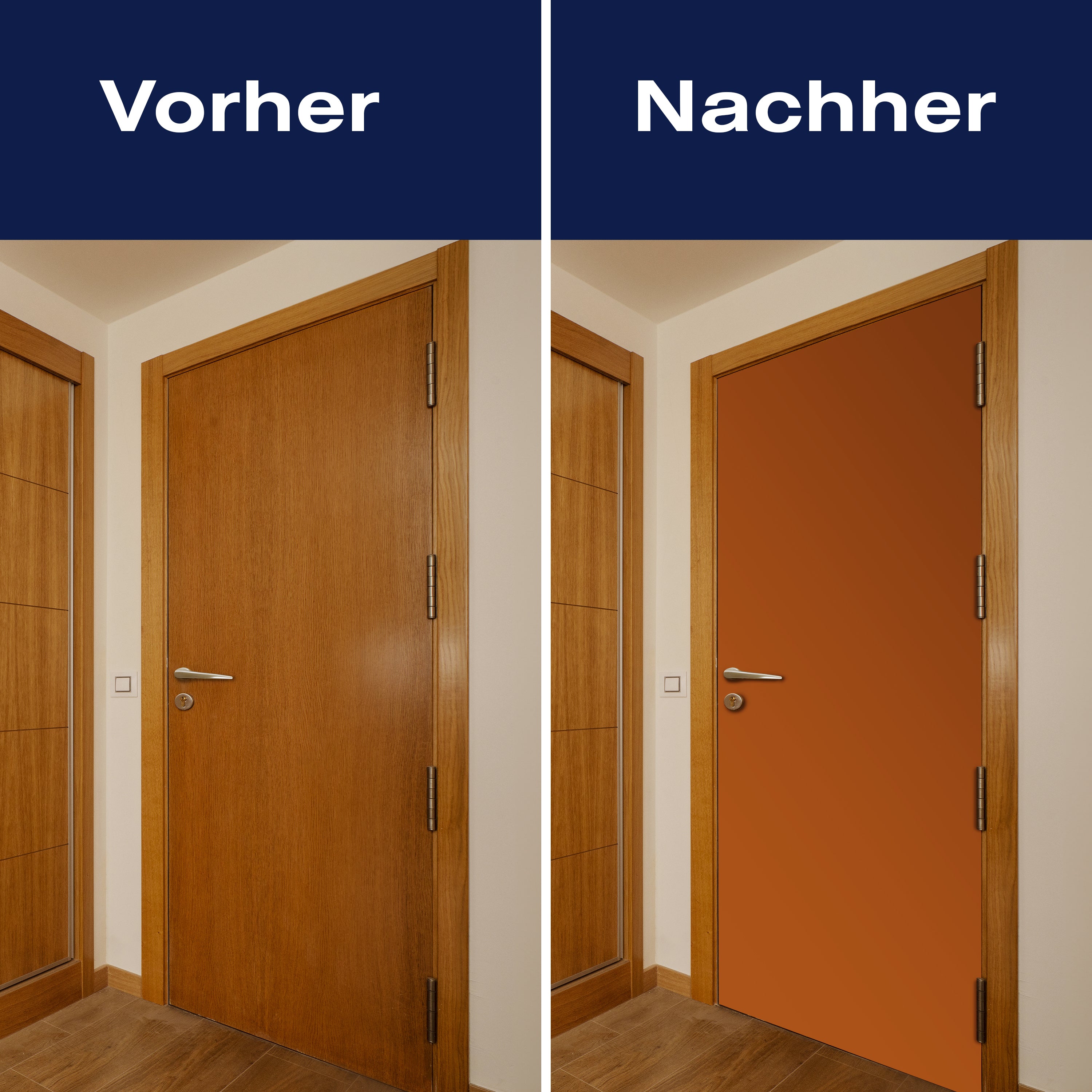 - Drücke die Kanten und Ecken der Türfolie vorsichtig an, um sicherzustellen, dass sie gut haften und keine Ablösungen entstehen.