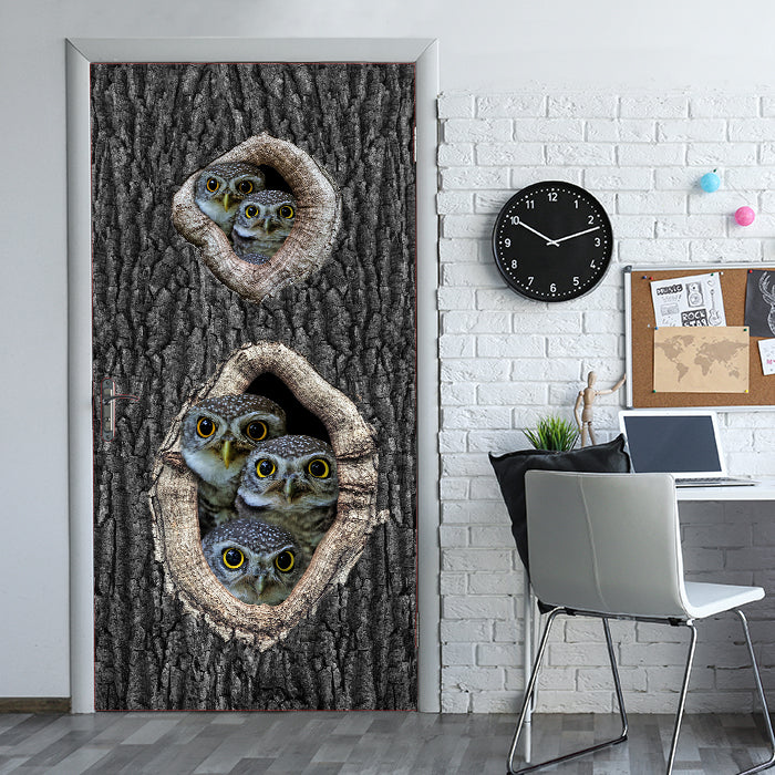Entdecke die Türtapete Eulen im Baum, Familie, Vögel, Wald